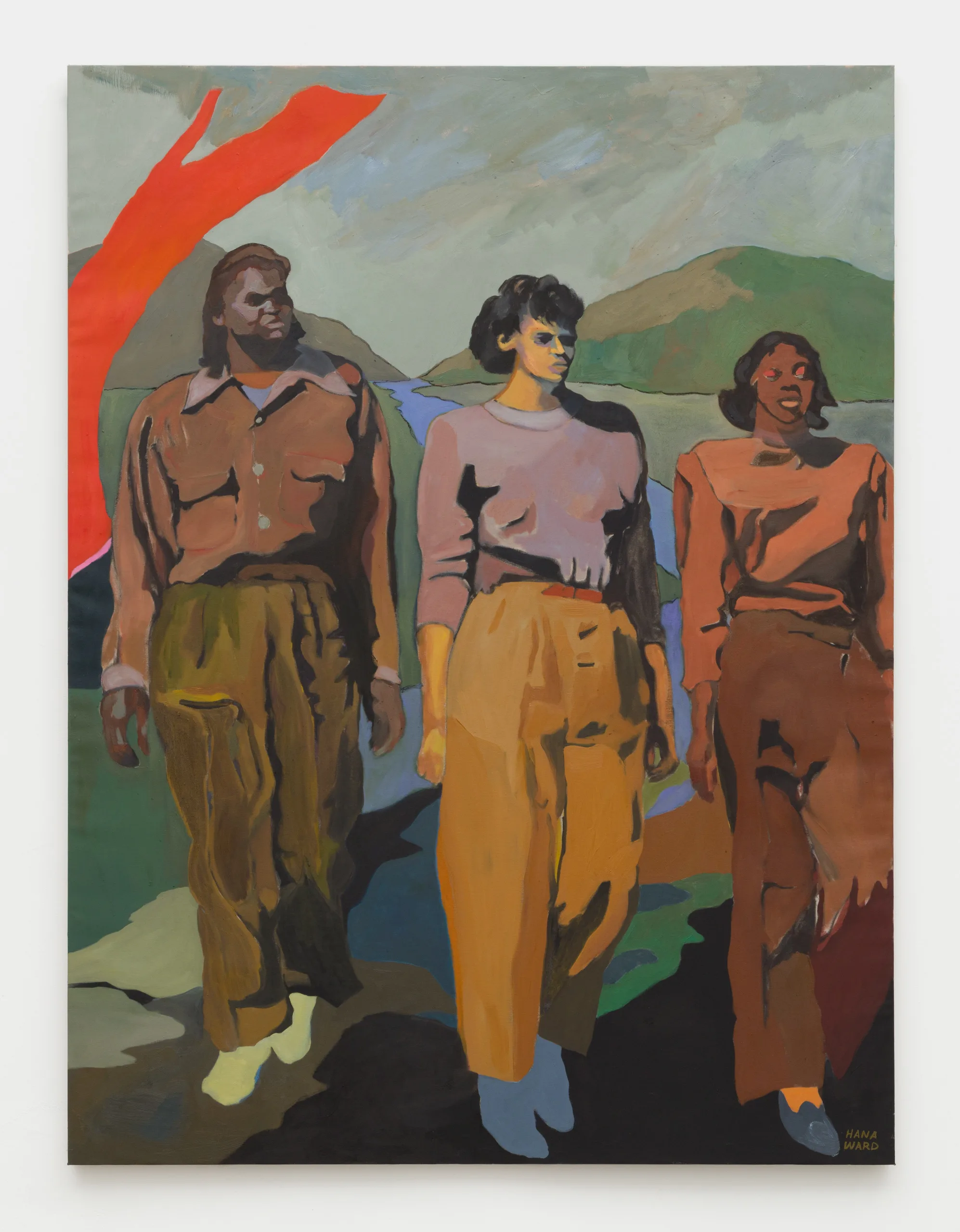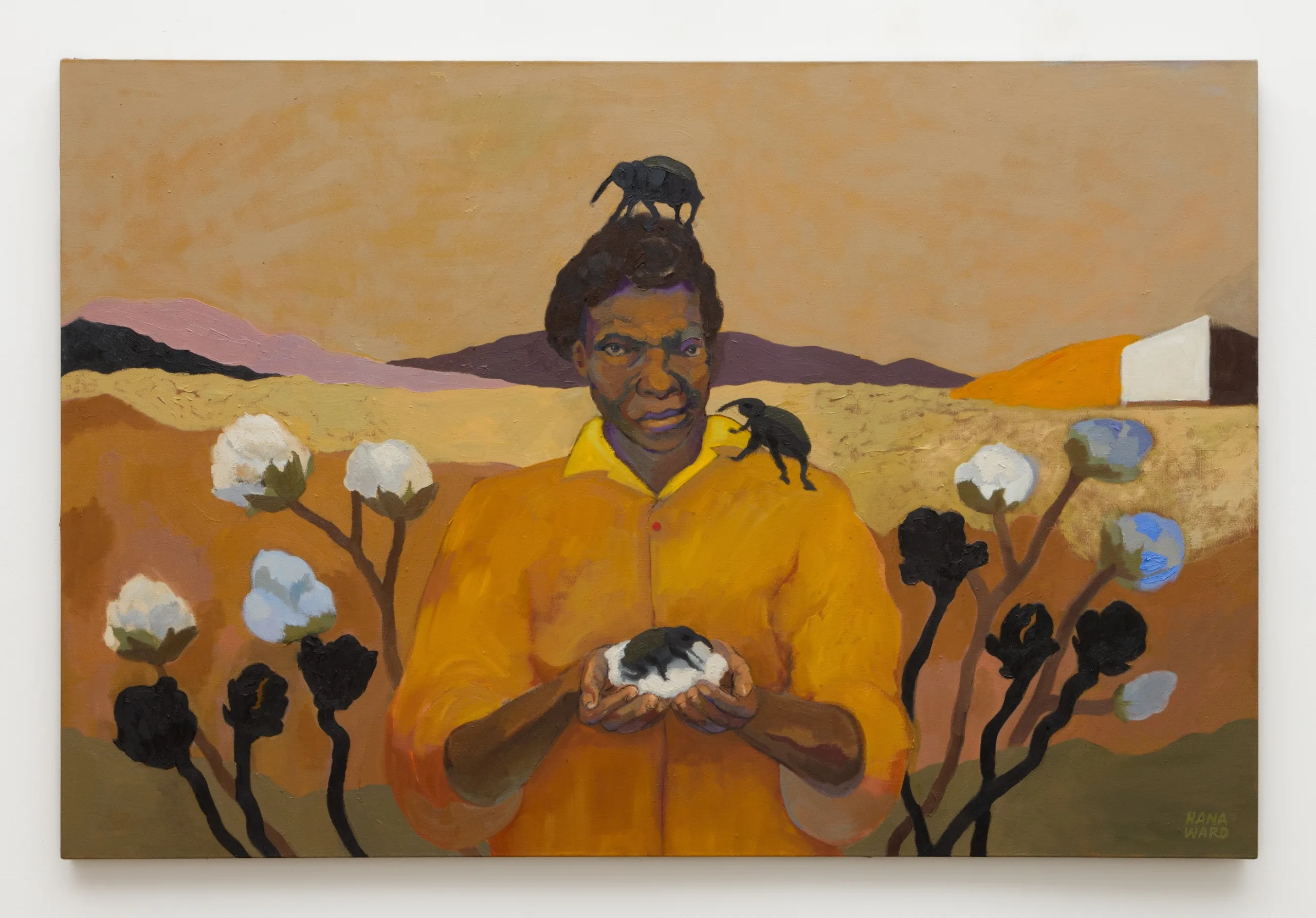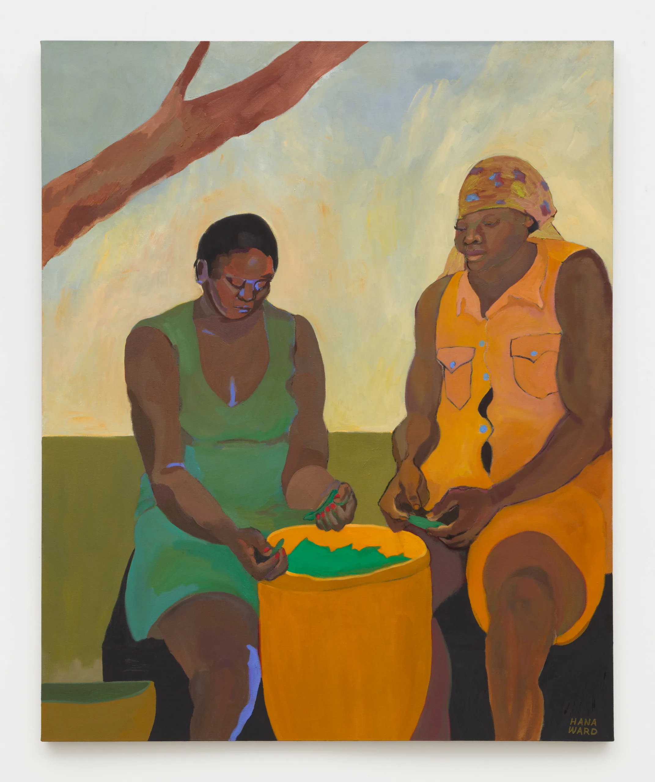 Hana Ward makes paintings and ceramic works that explore themes of identity, introspection, and transformation. Appearing both ethereal and visceral, Ward weaves together moods, motives, and narratives to depict Black and Brown feminine figures who reflect and dream, creating their sovereign worlds from the inside out. These multitudinous visions of unfolding self-actualizations are sometimes sheltered in the solitude of domestic space and other times liberated into landscapes. Influenced by anticolonial histories, spiritual texts, and cycles of the natural world, as well as the canon of art history, Ward’s work excavates inner dimensions to discover a world where one’s sovereignty is in the here and now.