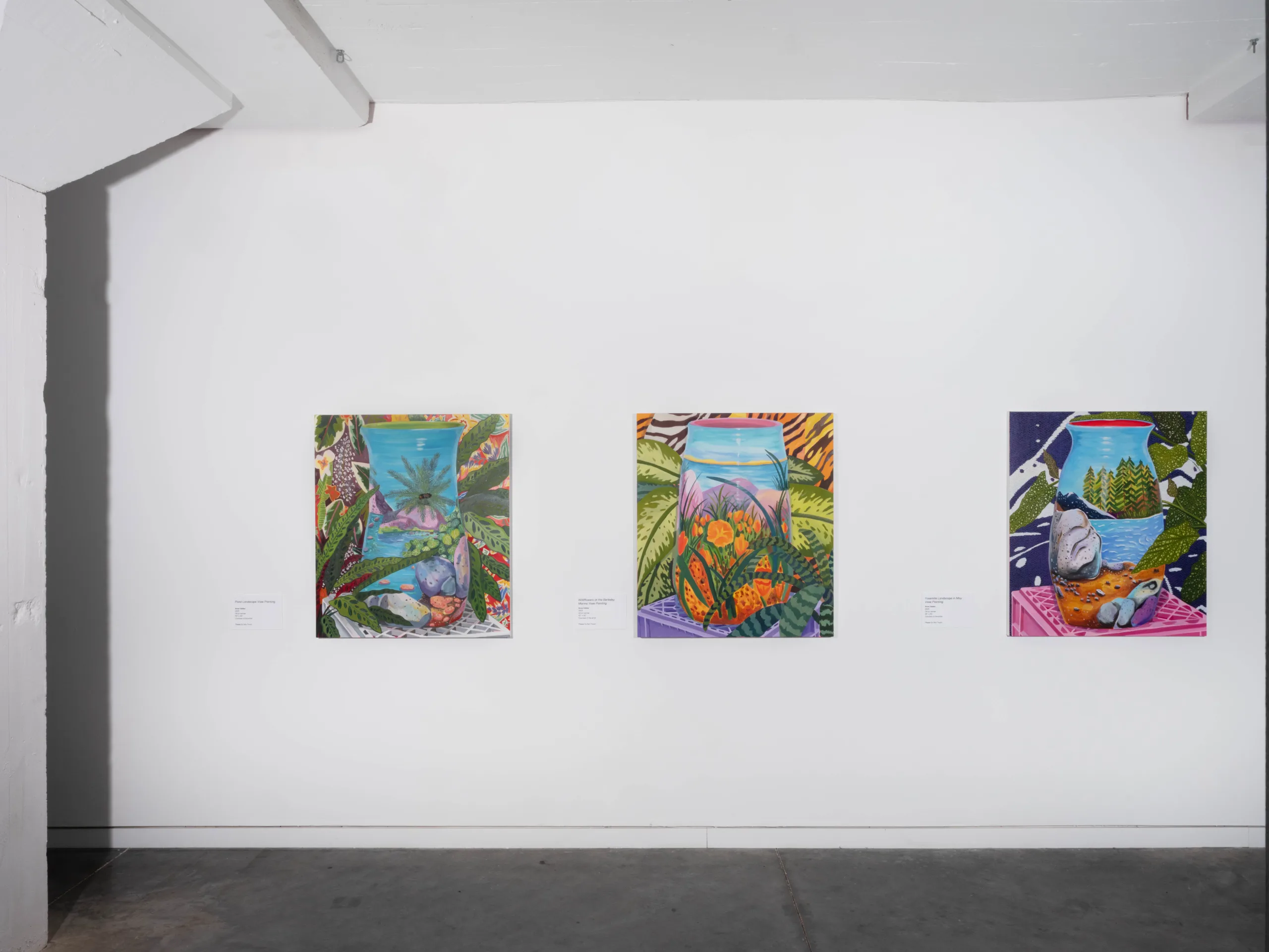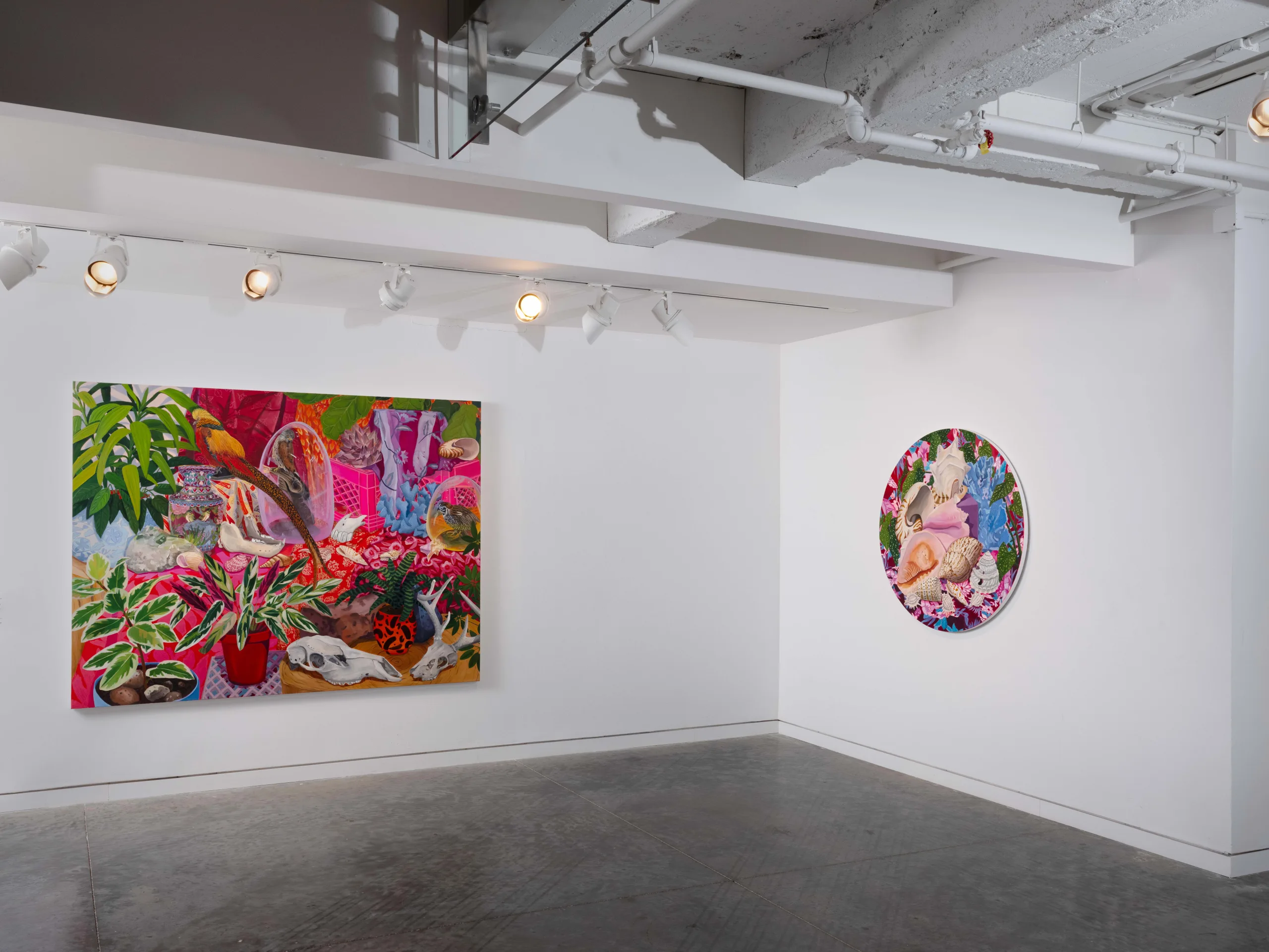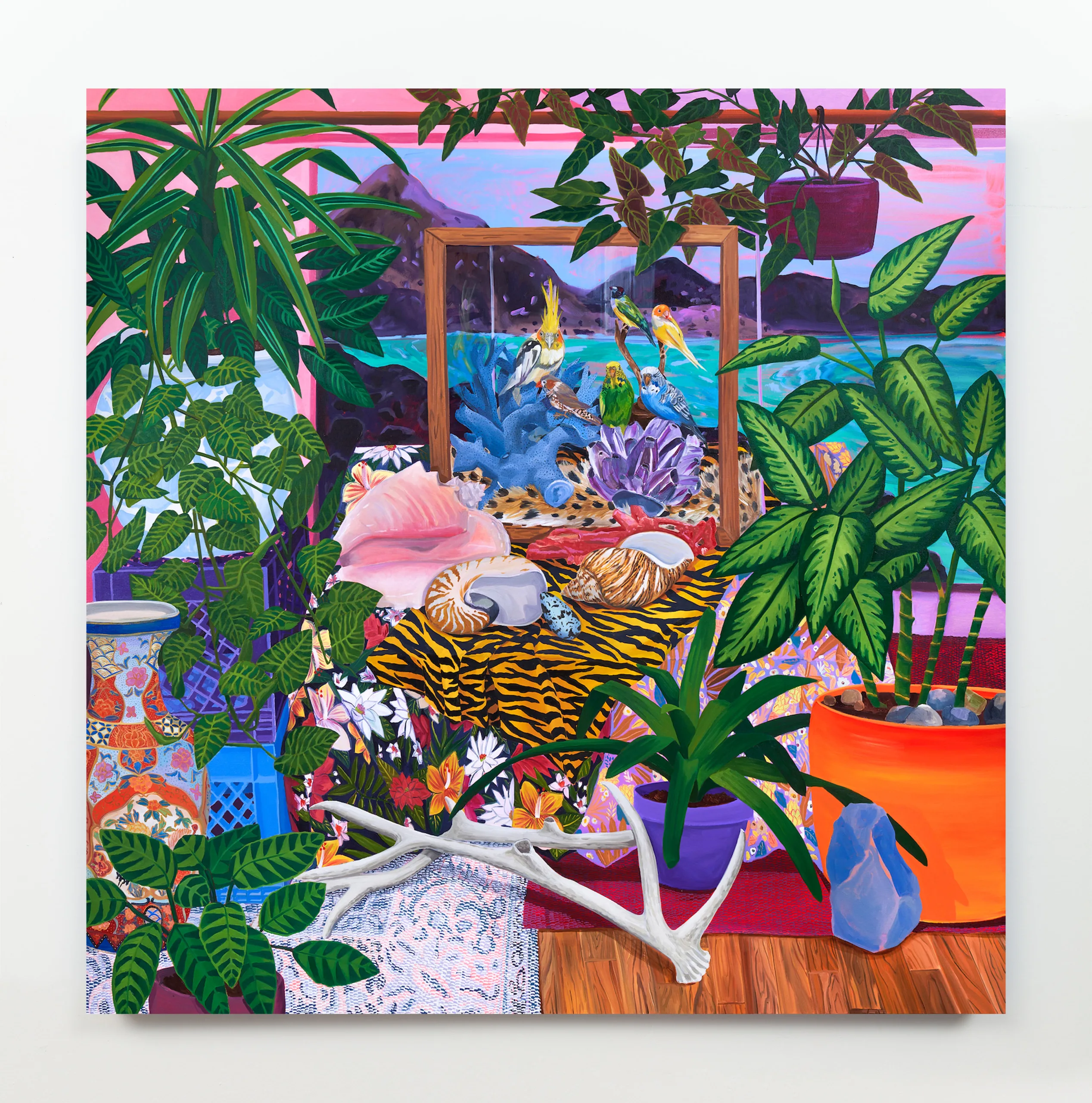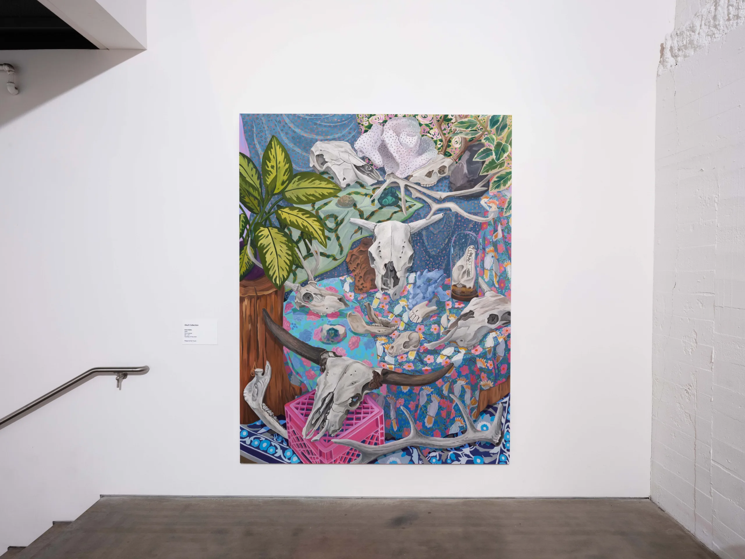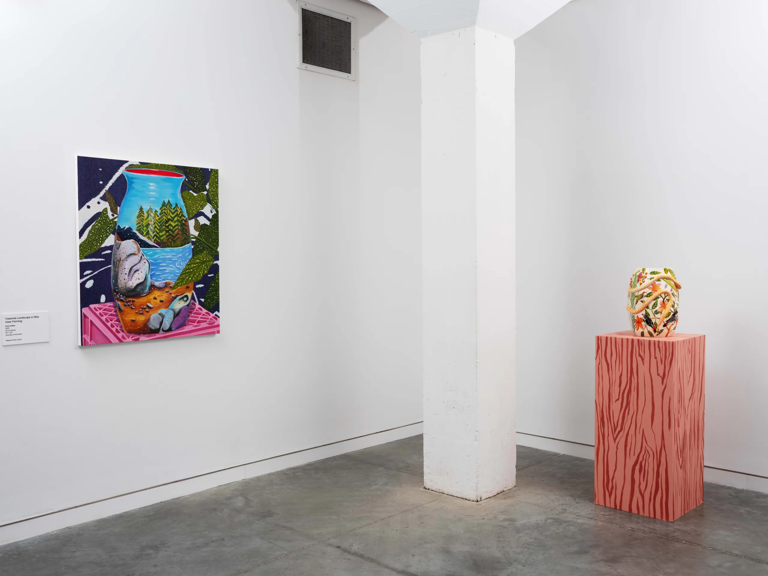 The Nature of Things features paintings and ceramics depicting maximalist compositions of still life arrangements that seek to explore object-making and how objects form a tapestry of visual history, both contemporary and historical. Valdez rearranges her growing collection of natural and human-made objects in endless permutations in her Los Angeles studio. Semi-precious rocks, plants, shells, corals, animal bones, and taxidermized birds line the studio shelves. Valdez also incorporates her own ceramic sculptures, paintings, photographs, antique vases, books, milk crates, textiles, and rugs as she creates her visual language. Parts of Valdez’s studio resemble a small natural history museum and objects are never deaccessioned. “My paintings are like contemporary versions of cabinets of curiosity,” Valdez explains, “presenting viewers with a visual feast of carefully chosen objects and arrangements.” As she plans compositions from grouped items, new narratives arise. Considering the cultural or personal significance of each object, as well as tactile qualities like color and texture, Valdez endeavors to access new relational stories, compelling the viewer to become absorbed into her world.