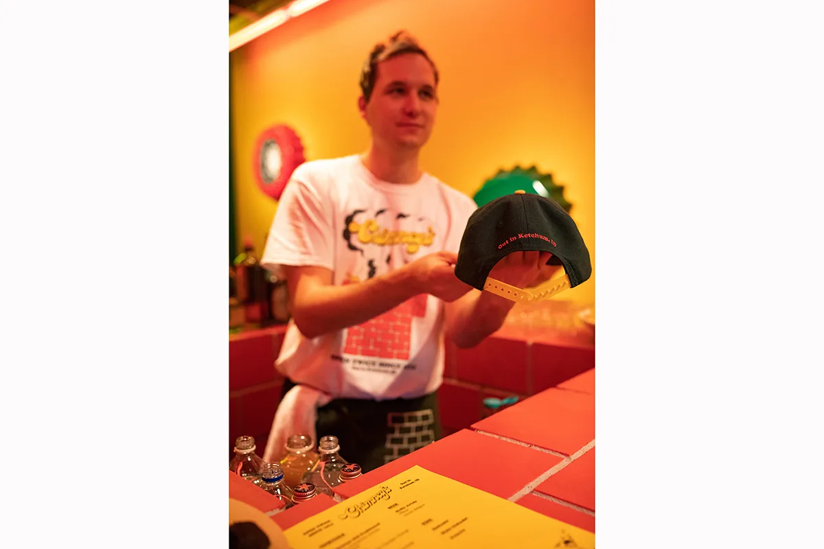 Built using the methods of TV set production and inspired by mimetic architecture, Sanders has designed a bar in the shape of an oversized chimney that intentionally recalls a jolly cartoon Santa Claus emerging from within to deliver regularly scheduled joy. The artist’s vision of Christmas in July is excellent hospitality in the form of ambiance, art, and a delicious Clean White Drink. One of the many finely tailored cocktails in Sanders’ bar repertoire, this signature White Russian combines vanilla bean infused vodka, vanilla simple syrup, fresh orange juice, Chaokoh coconut milk, and coffee dust—no need for fake snow with this gift on tap, however “unpleasant guests will receive a lump of coal.”