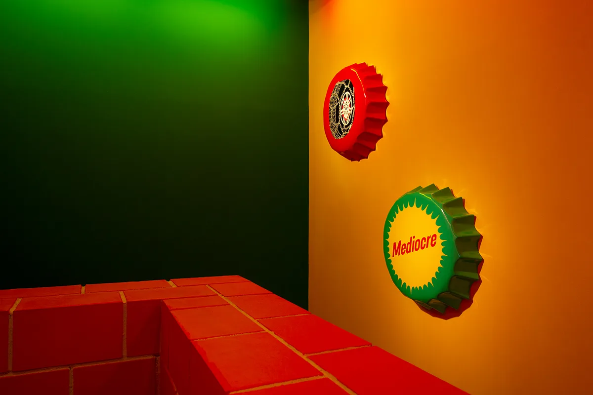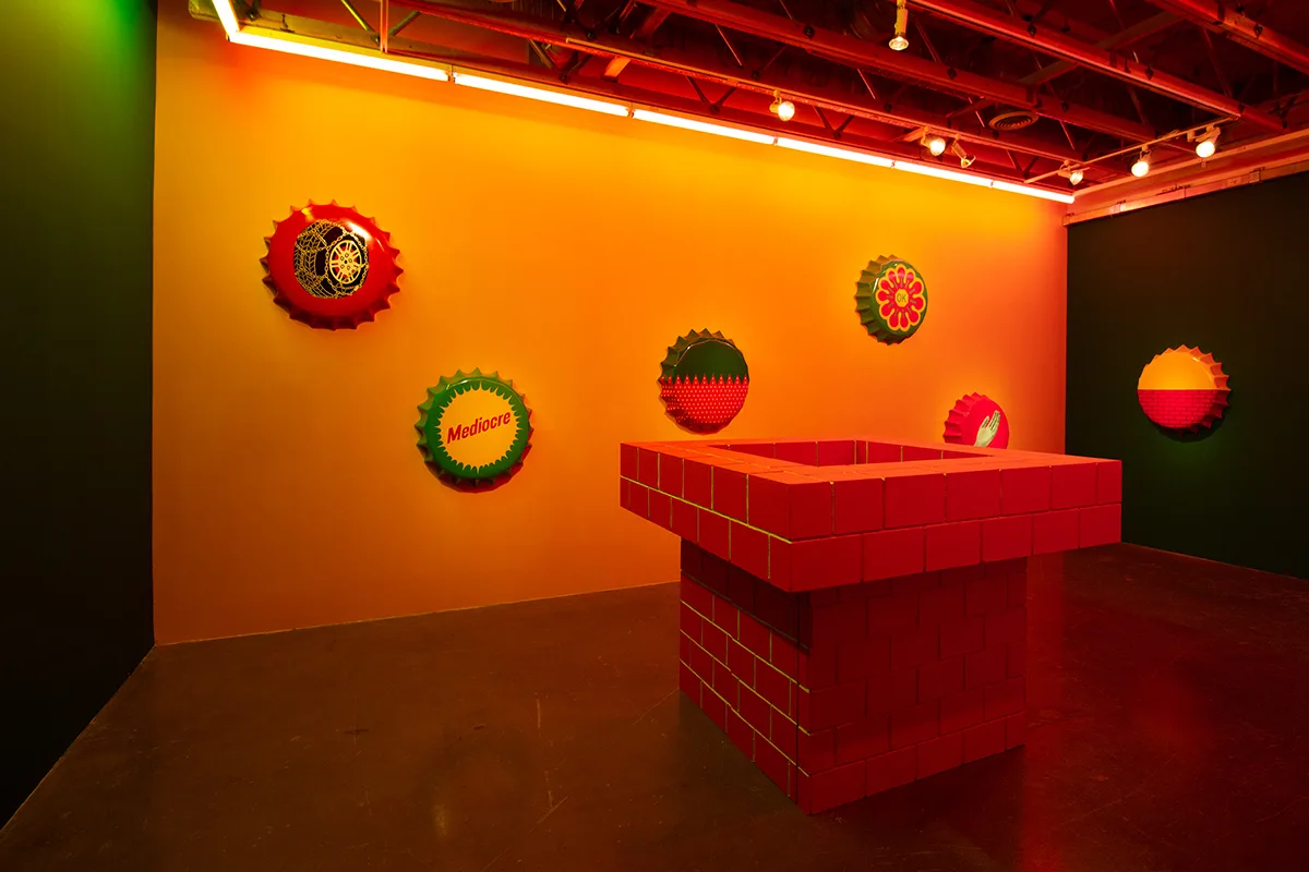 Ochi Gallery is pleased to present Nine Bottle Caps and a Chimney, a new solo project by Ben Sanders on view from July 24, 2021 through January 29, 2022. This exhibition features nine new bottle cap sculptures and a chimney-shaped bar that will be periodically activated throughout the summer, fall, and winter, beginning with a bartending performance by the artist on Saturday, July 24 and ending with the Ochi New Years’ event, a long-standing gallery tradition. The New Year's event will be by invite only and interest parties can get on the list by emailing the gallery.