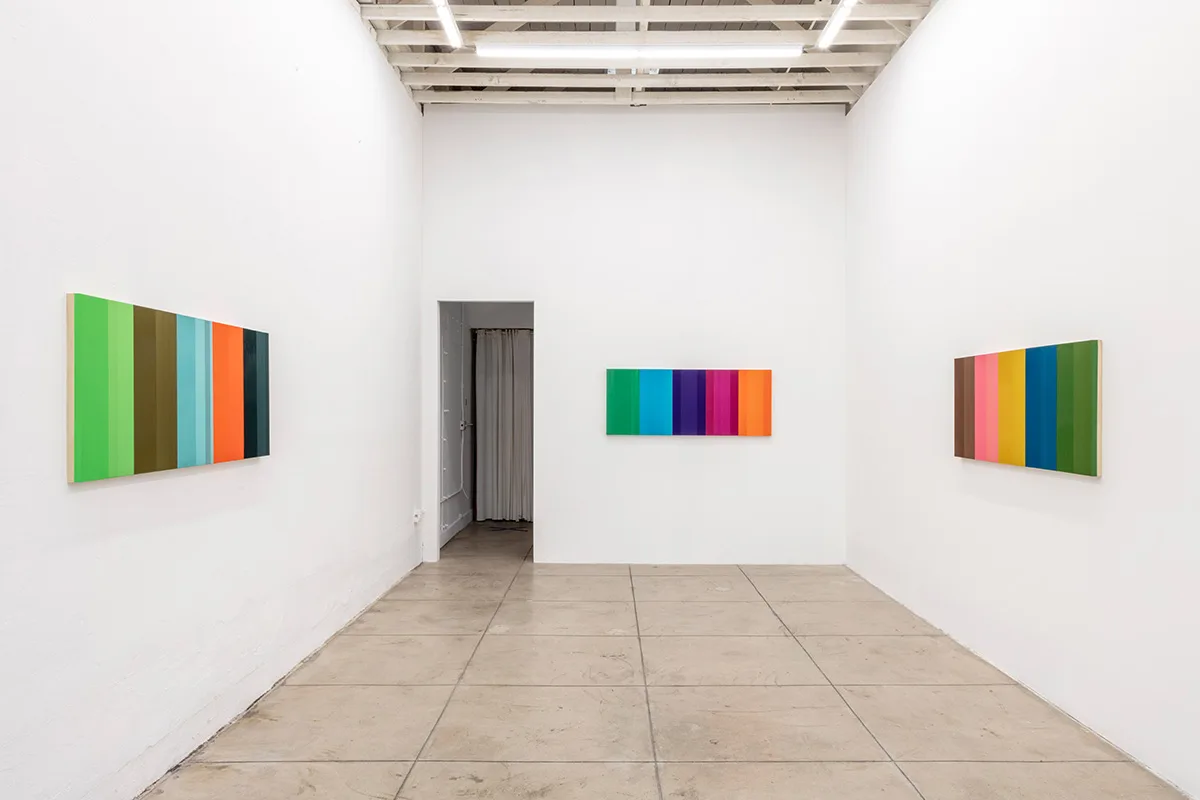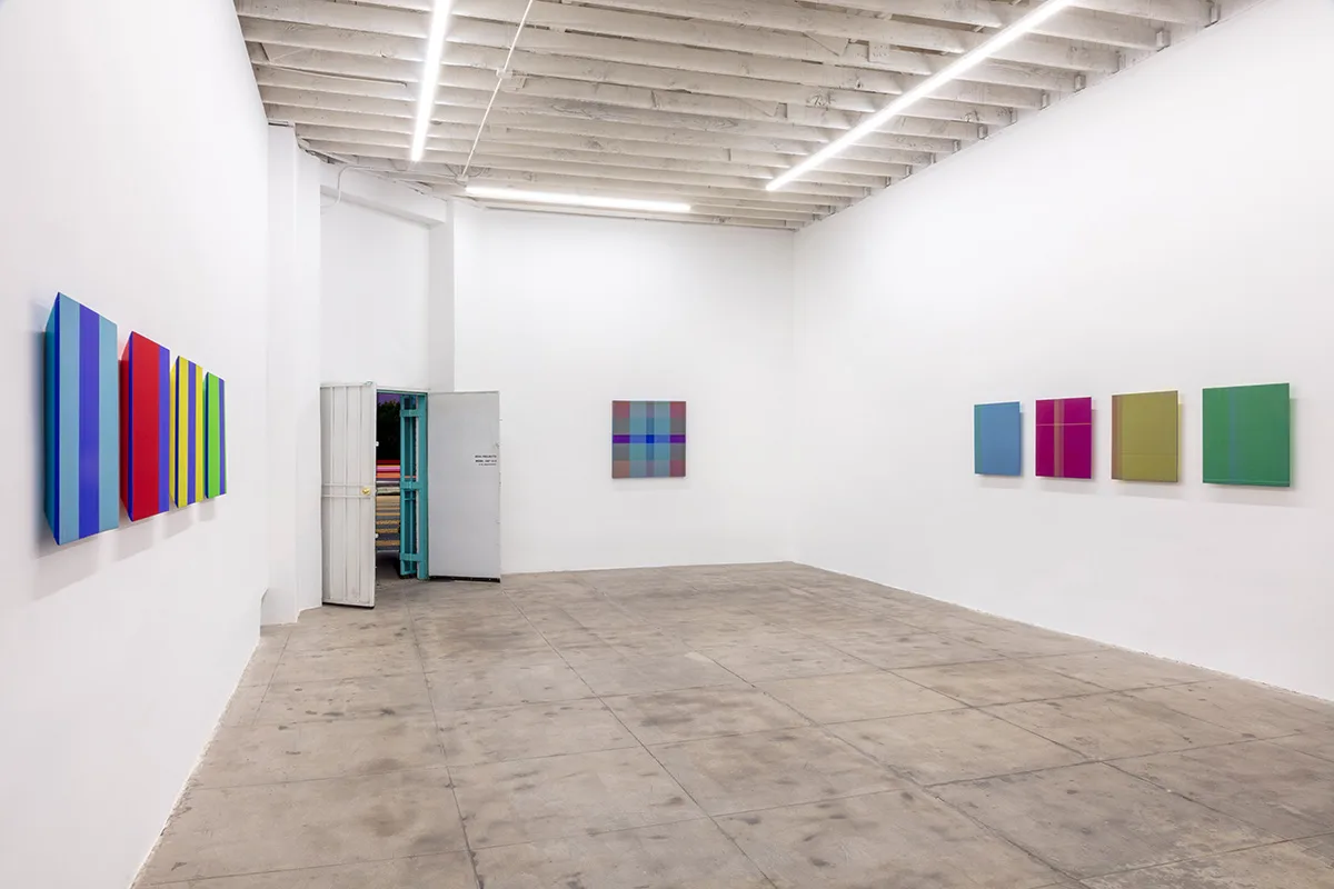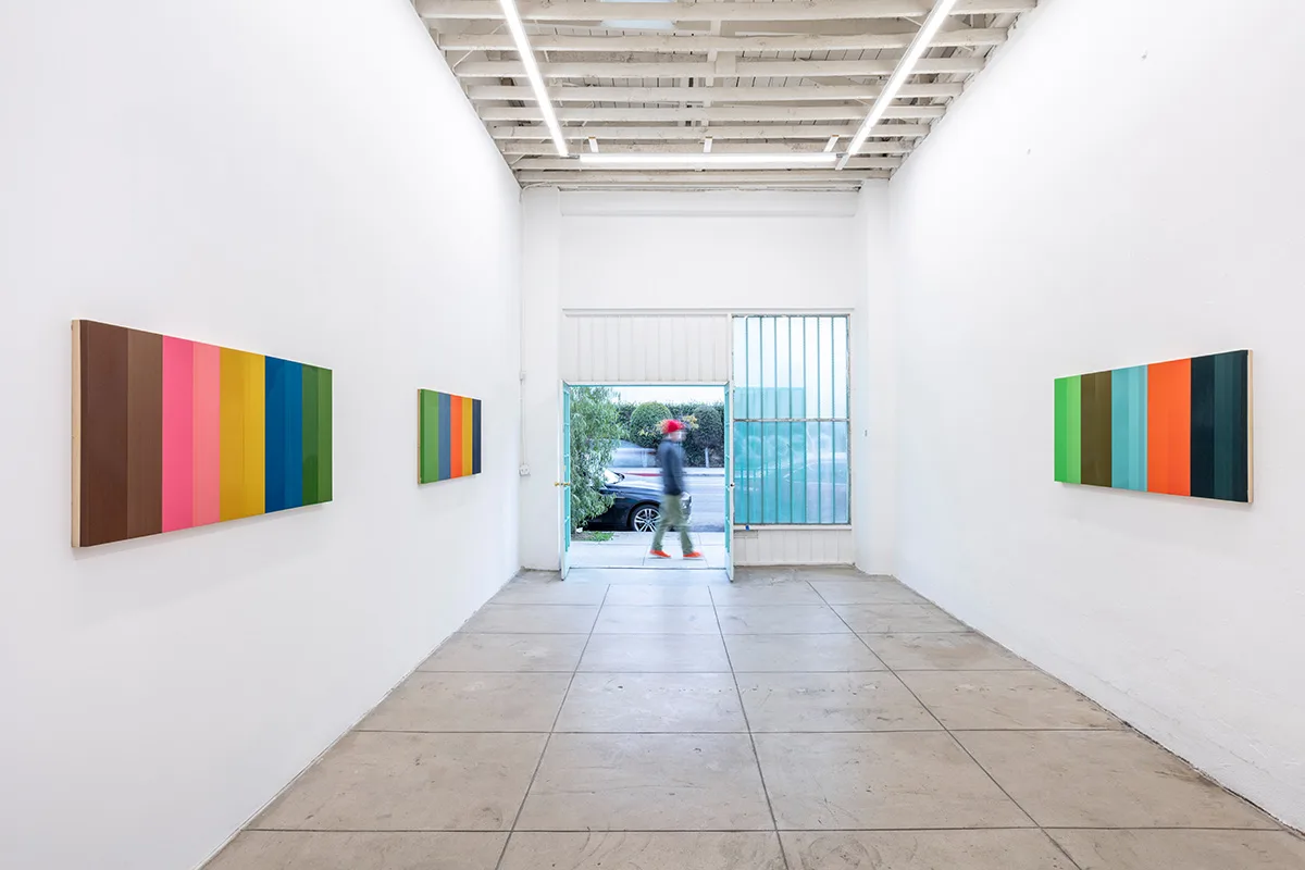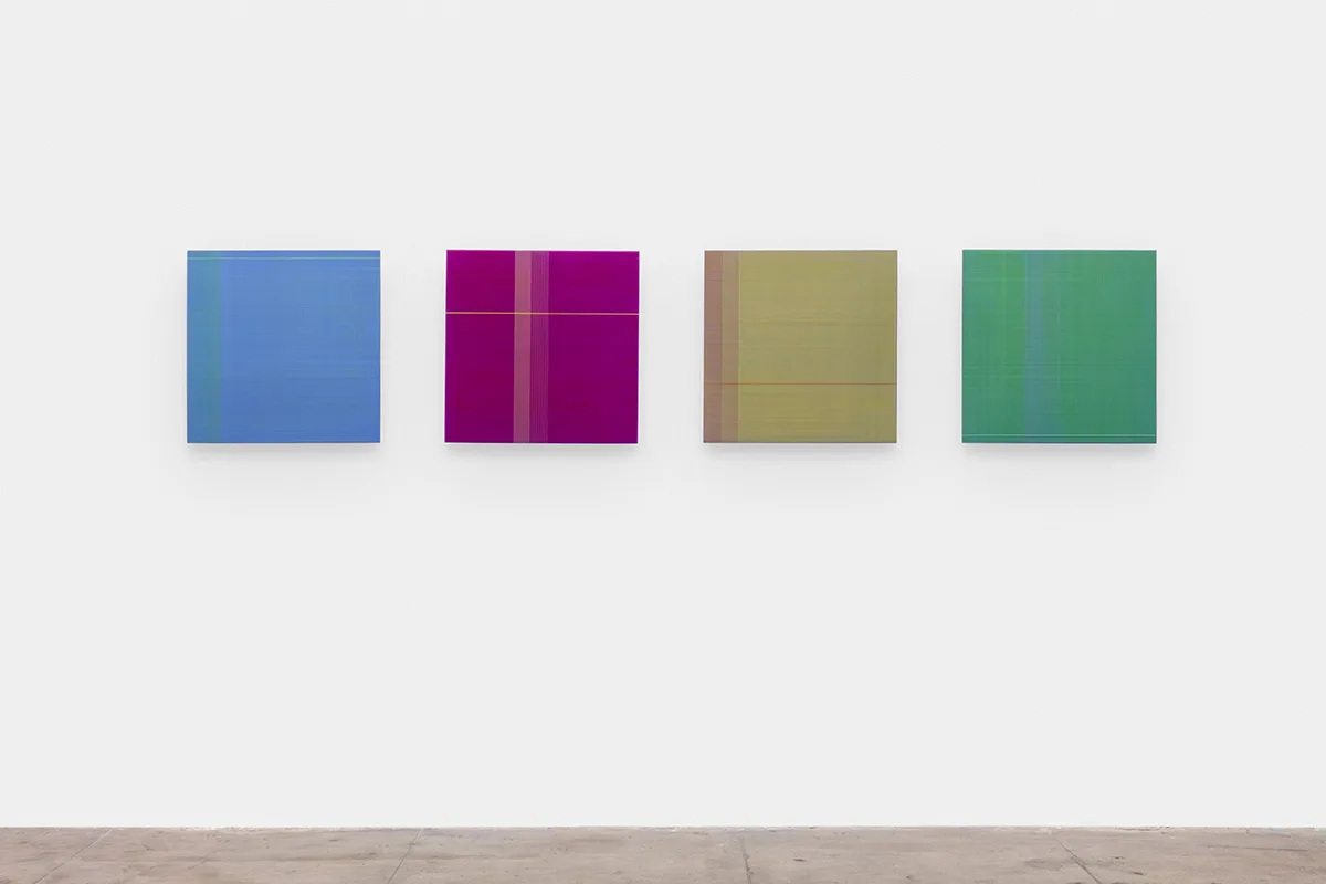The exhibition features twelve new wall works intentionally placed throughout OCHI’s two Los Angeles galleries. Building upon the artist’s unique visual vocabulary of thread, paint, and wood, Wills’ new work evokes experiential understandings of line, color, space, and object as he aligns his practice with minimalist abstraction, the subversive history of the monochrome, California Light & Space, and other art historical paradigmatic shifts. Singular strands of thread are delicately wrapped around wooden substrates, eventually creating surfaces that appear to vibrate and shift depending on available light, thread density, the architecture of the panel, and the motion of the viewer.