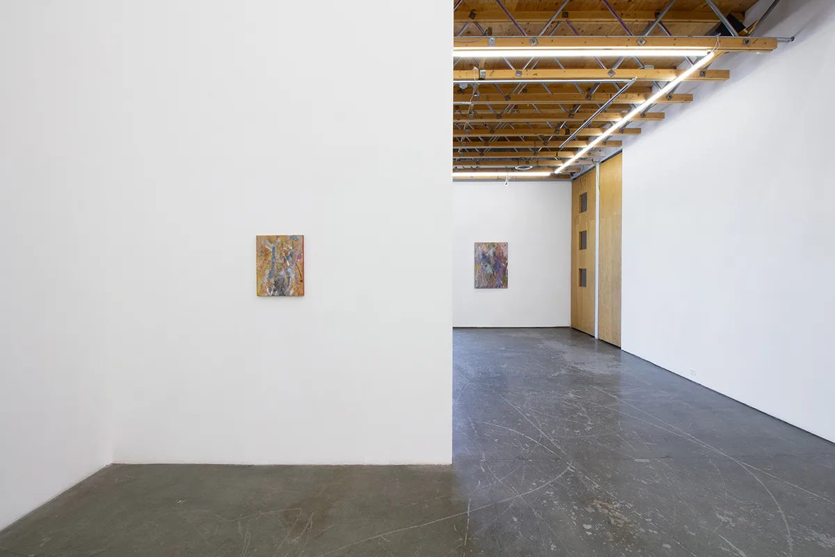 Lonegan’s paintings, made slowly, also reward slow looking. If one is patient, they will encounter numerous portals, where colorful worlds seem to emerge and dissipate. Each of these five works suggest a perspective at the edge of subjective experience, optical perception, and empirical fact—a consciousness both skittering and contemplative, caught up in brushstrokes and paint sheen. The viewer navigates these paintings through discreet passages that direct both inward towards the illusion of space and feeling, and outward towards the world.