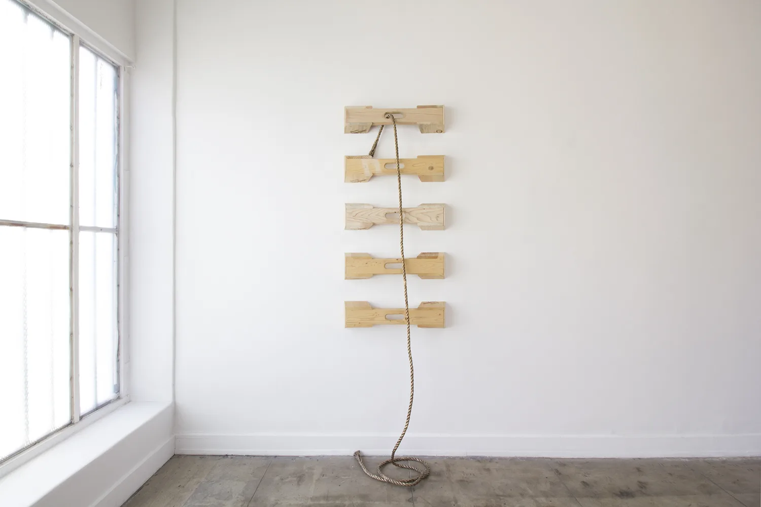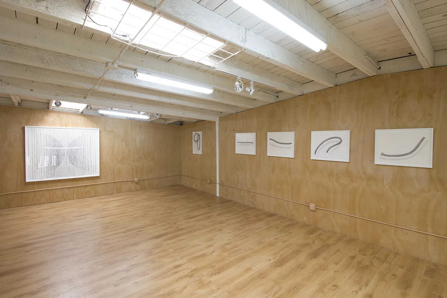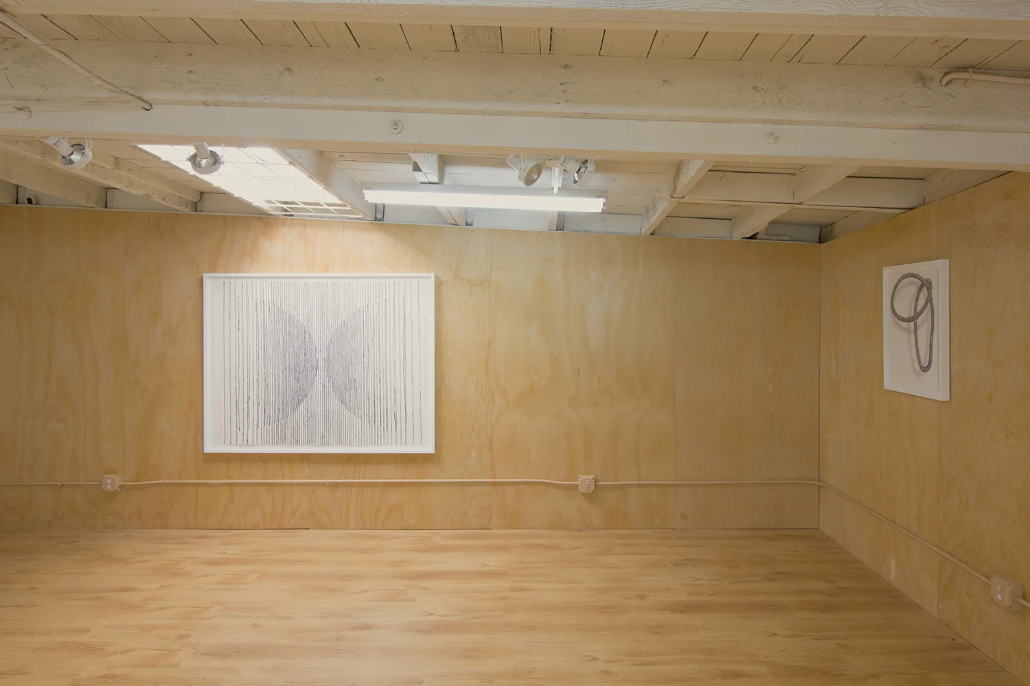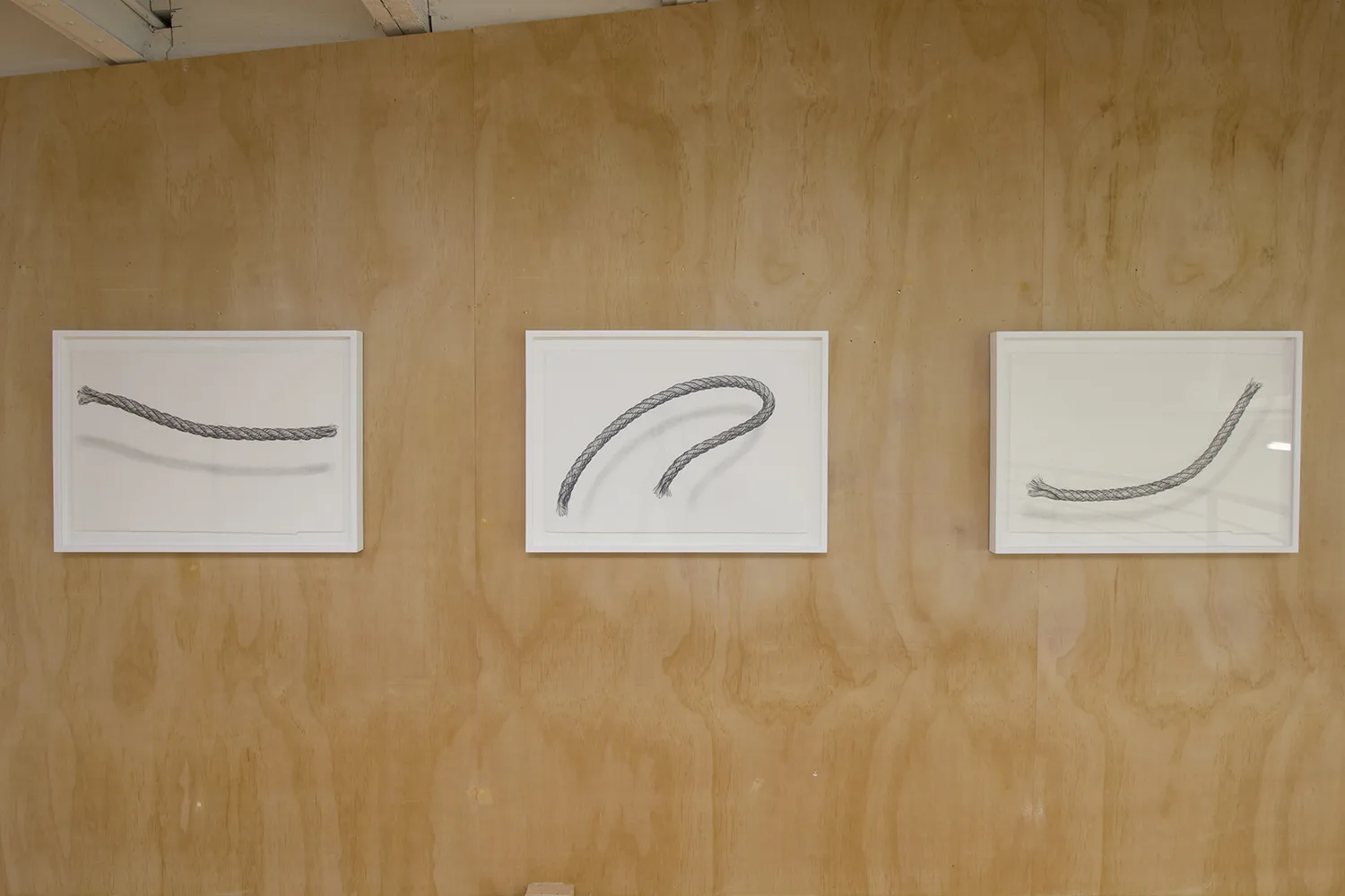 The central focus of Parducci’s exhibition consists of twenty-three 16’, hand-knit jute pillars spanning from floor to ceiling. Arranged in a staggered grid measuring approximately 14 feet square, they reference the twenty-three interior columns of the Parthenon that surrounded the monumental statue of Athena. Over the two years Parducci spent knitting these pillars, she considered the gendered aspects of labor, and the symbolic significance of the physical remnants of Western history. Appearing, but failing to be structurally supportive, Parducci’s knit columns, along with related sculptures and drawings, address the dual nature of societies that build, and then ultimately destroy themselves. Through the substitution of a traditionally feminine craft as the means of production, Parducci considers these recurring cycles in history and wonders about the possibilities of a society built from a female perspective.