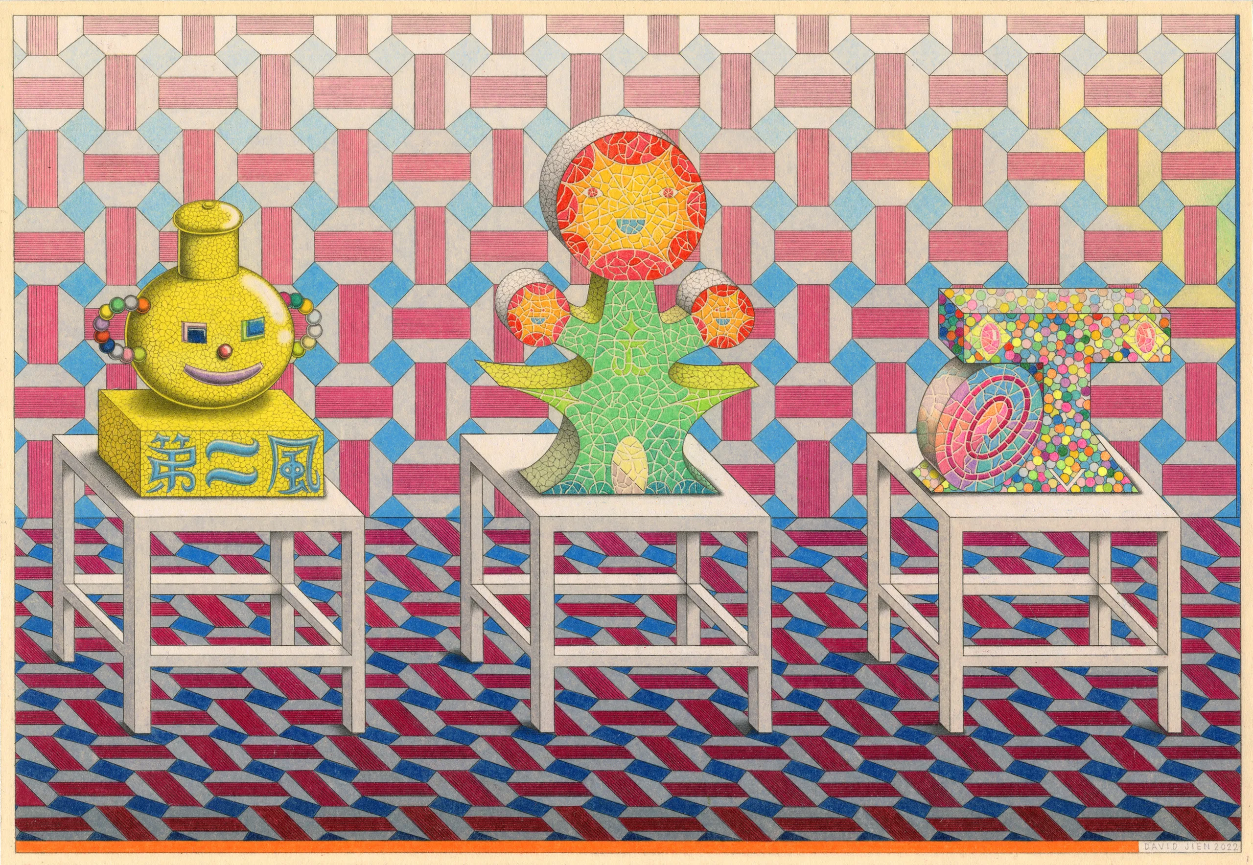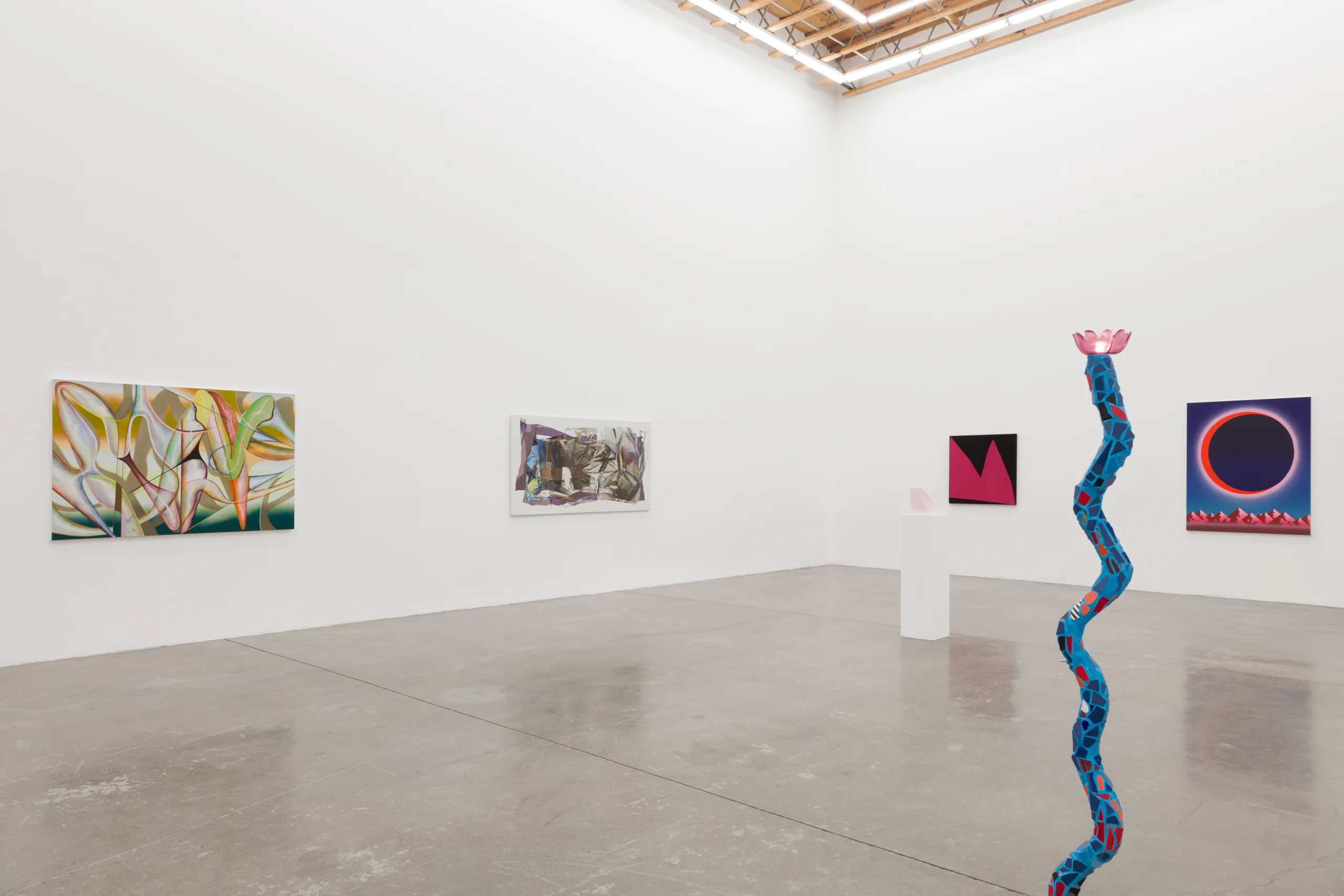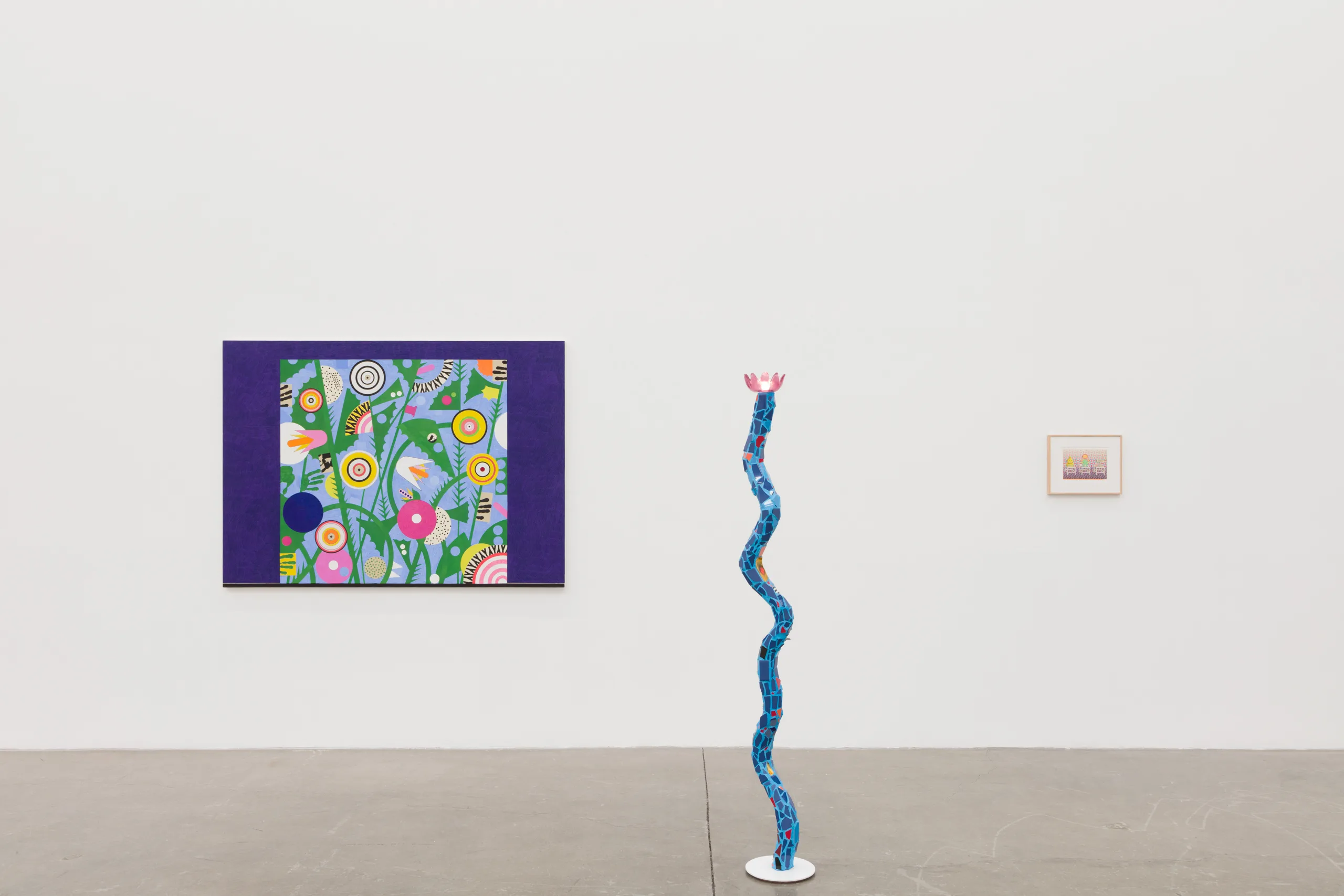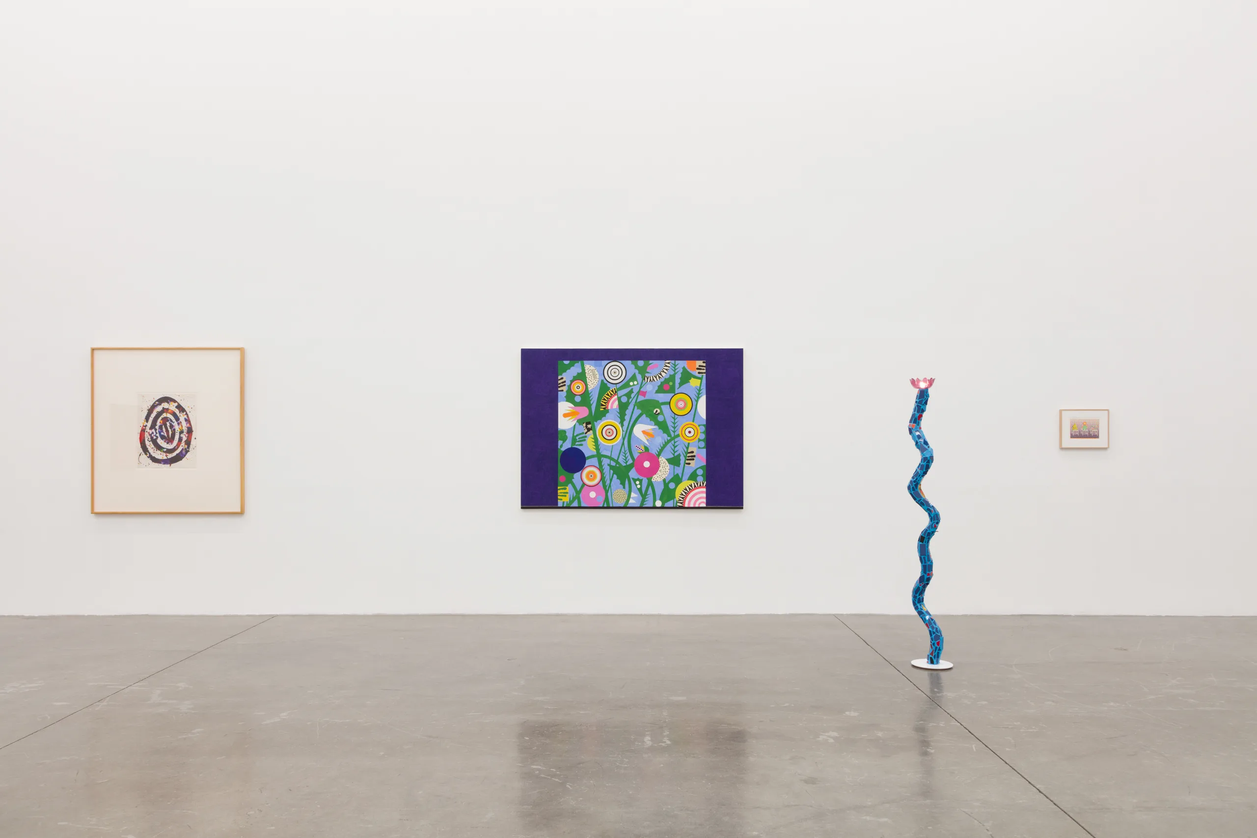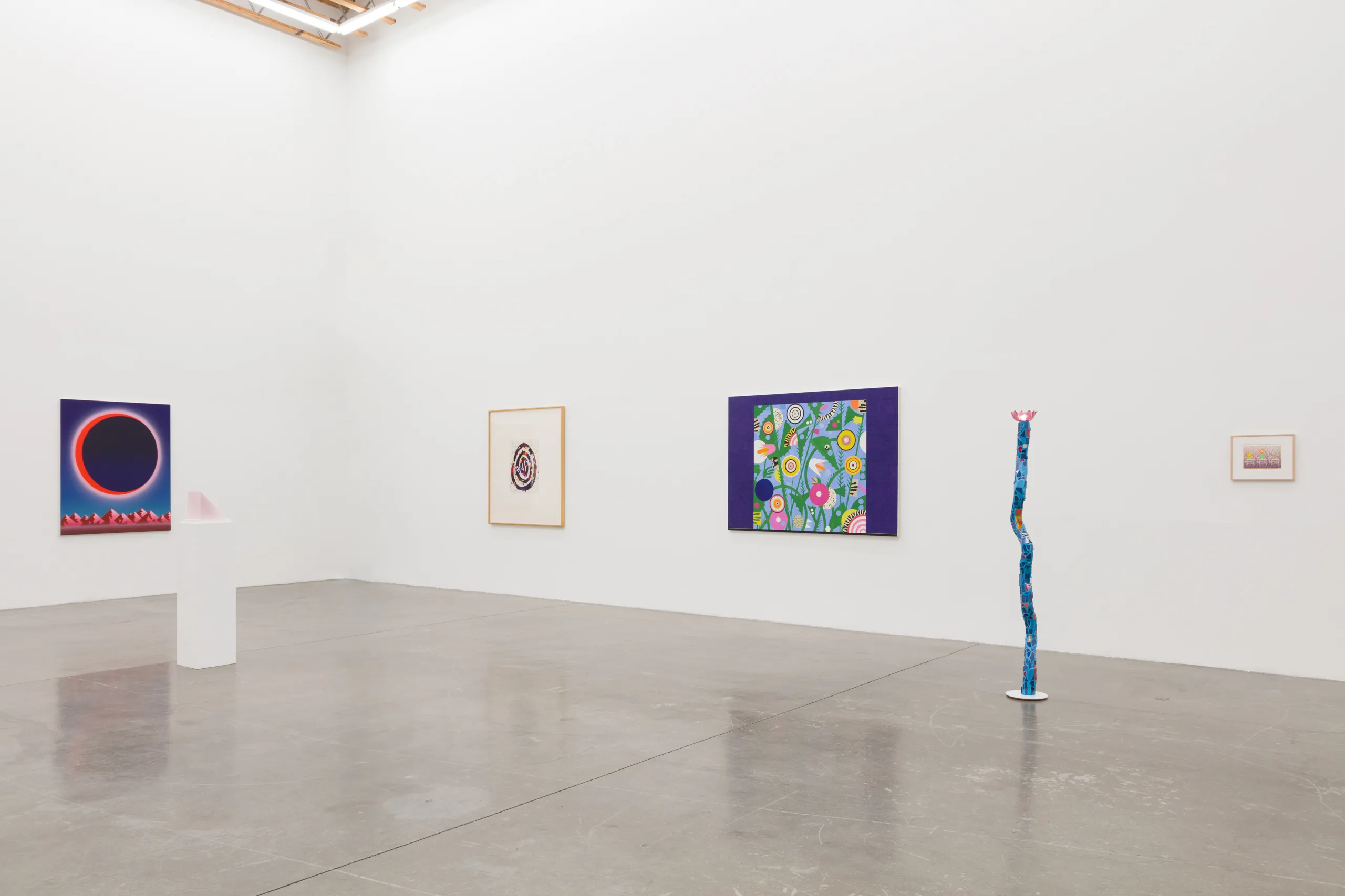 Witnessed through the eyes of two generations of the Ochi family, artists drawn to such “full worlds” are keener to welcome adventure, err on the side of experimentation, and embrace a philosophical outlook that demands experience from beauty. Coping with Paradise assembles a group operating under conditions similar to what Hickey describes—these artists create perceptually engaging works across a range of unexpected media and prioritize the sensory and the symbolic, allowing their work to embody and transcend physical surroundings. Generative and expansive in regard to the legacy of this slice of art and gallery history, Coping with Paradise exists in and represents a “full world.”