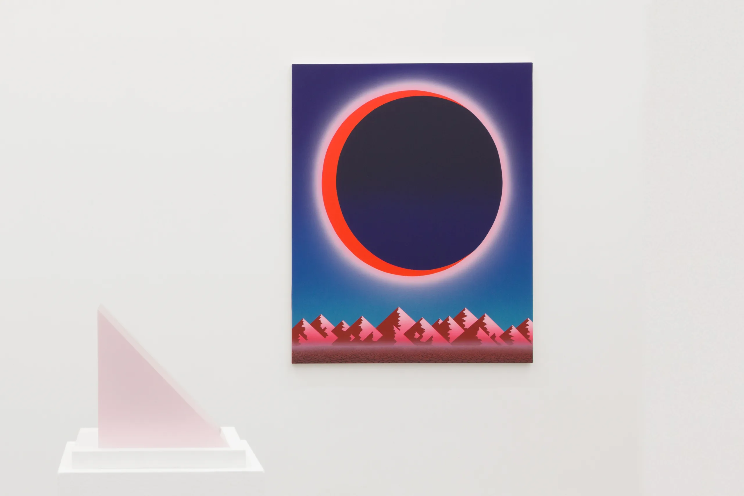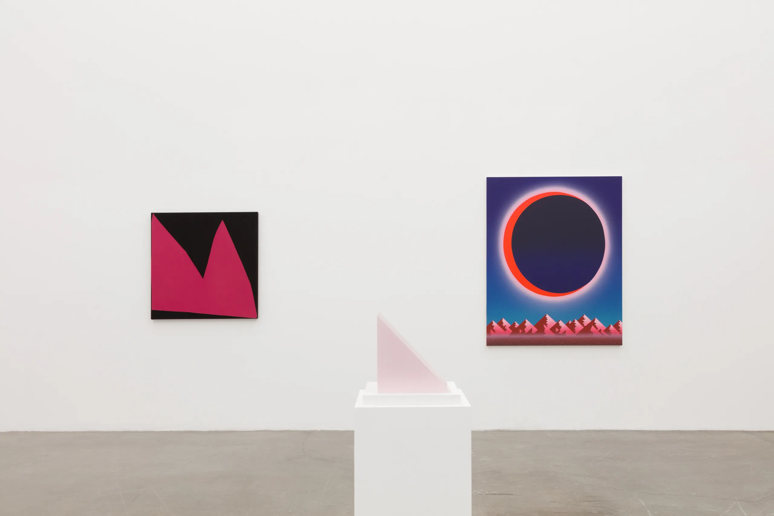 OCHI in Sun Valley, Idaho has exhibited works by Southern California-based artists since its inception in the 1980s. Despite Sun Valley’s lack of coastline, both locales share a mythological gateway mentality, providing access to overwhelming, undeniable encounters with the physical world. A plethora of sensory experiences and visual splendor borders on overload in both places—perfect golden hour gradient sunsets reflecting off beaches are anchored by palm tree-lined streets in Los Angeles just as imaginary extensions of Sun Valley’s perfect powdery slopes all appear to orient themselves towards the gallery building. Designed and built by Denis and Roberta Ochi in the early 1990s, the cavernous exhibition space surrounded by mountains would prove impossible to resist for several Light and Space artists well into their careers. OCHI presented solo exhibitions by Helen Pashgian, Peter Alexander, Ed Ruscha and others throughout the 90s—each serving as an anchor point within Coping with Paradise.