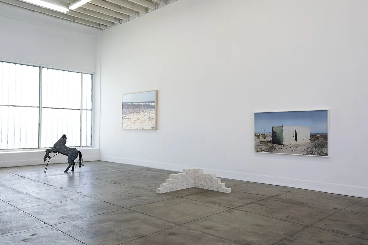 Questions around the conventions and boundaries of photography and sculpture are revisited throughout the exhibit. Rigid geometries act as both boundaries and portals. Chiara’s piles look to have collapsed or fallen out of Divola’s photograph. The rectangular graffiti in Divola’s Intervention K evokes Malevich’s Black Square, a catalyst for the avant-garde, yet its placement inside a dilapidated home re-figures notions of “Modernity”. Disrepair is positioned as a collaborative project between object and time, and the image a witness.