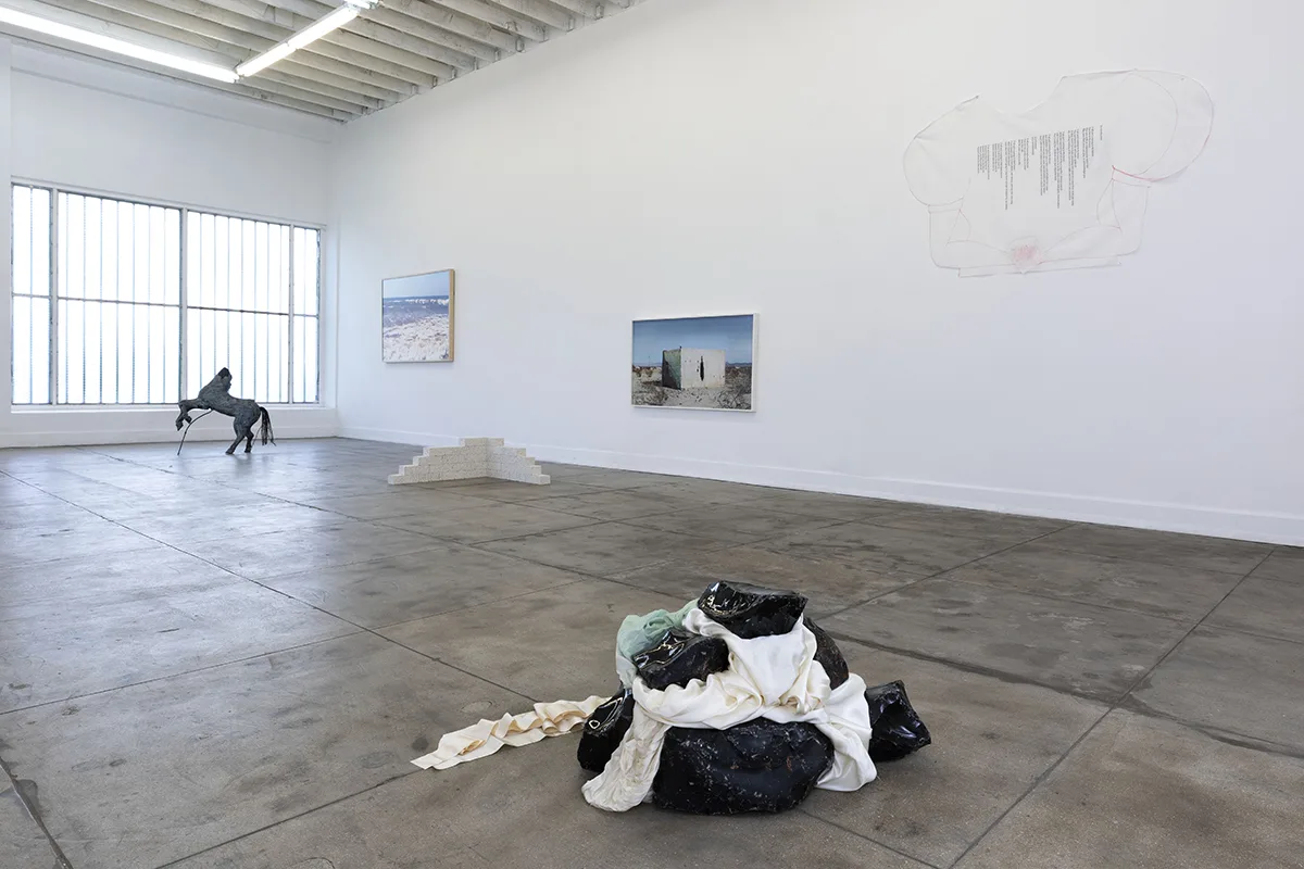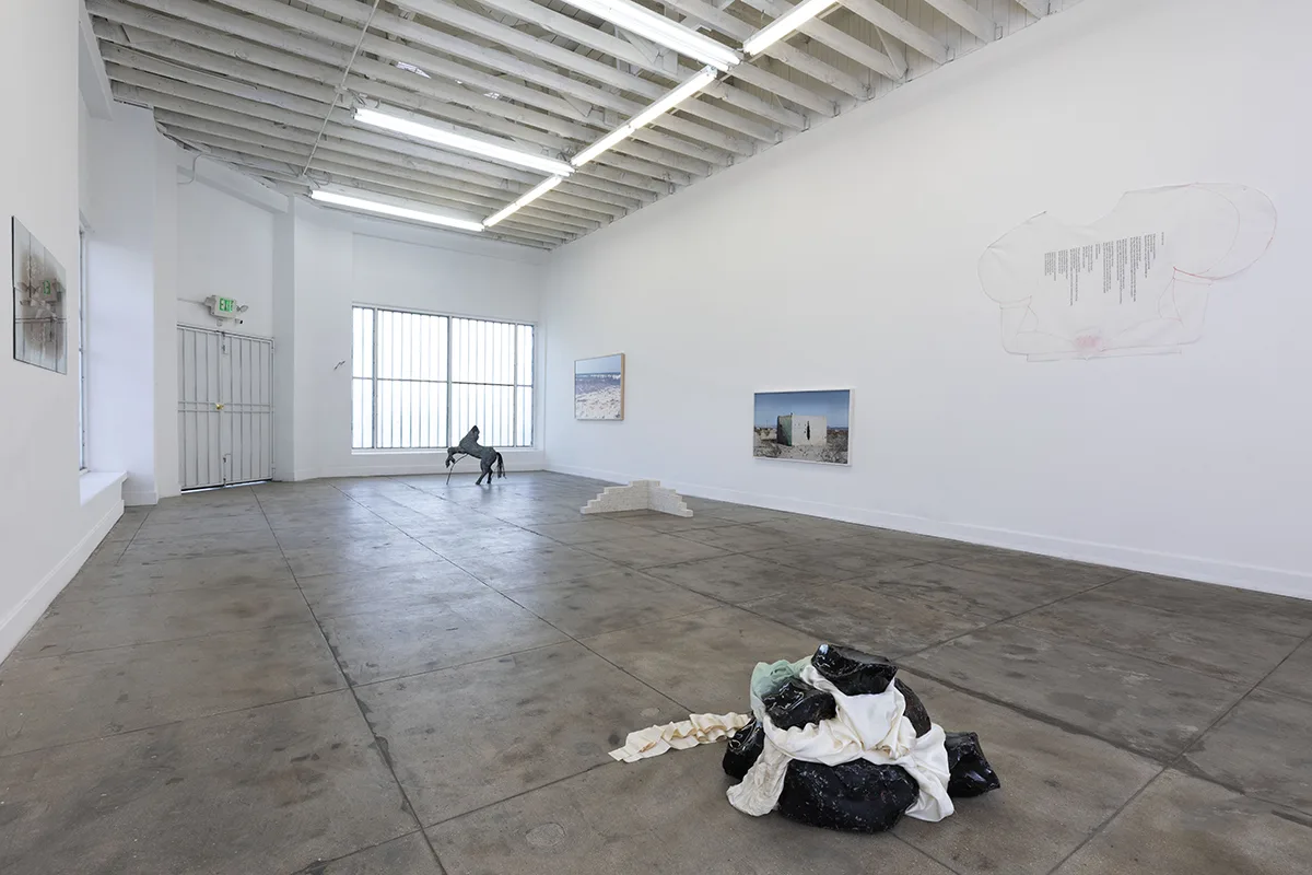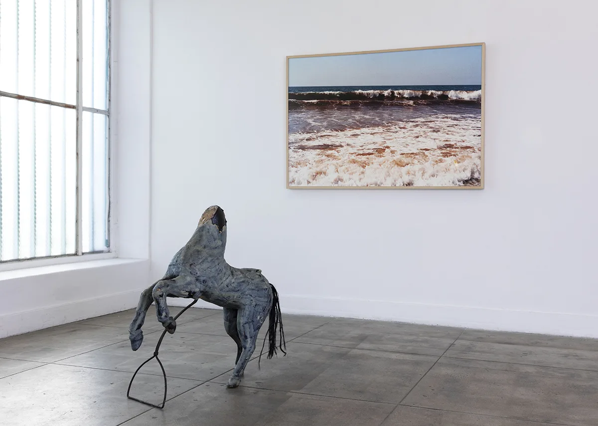 Mutilation to a landscape, or home, is interpreted along different lines, altogether implying the shared impact of the current frenzied eco-political moment. Papademetropoulos’ mutated grid of a woodshed in a forest further amplifies the distortive and allegorical language pervasive in traditional landscape painting. Medusa, (Bri Williams) is both mythological and deflective. Not so much an equestrian war monument but an aftermath, recorded. The grandeur of sculpture is questioned in several works, which although perform sculpturally point to questions around what is worth monumentalizing.