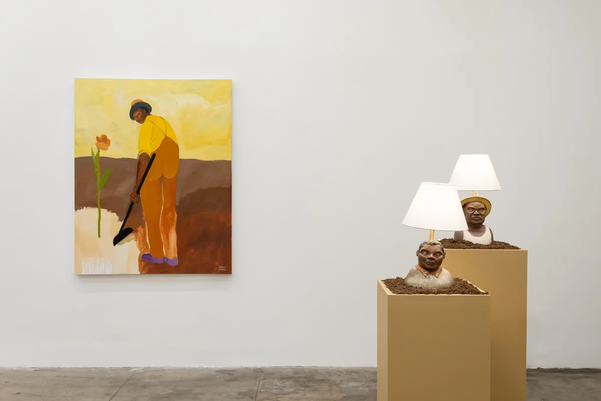 Like many of Ward’s titles, this one is polysemous—worn out soils refers to both our minds and our environments. Ward considers the ways subsistence farming has historically provided a path toward Black socio-political self-determination, and that self-determination, a catalyst for self-possession. Ward extends this practical labor of place-making and turns it inward to the ethereal, our minds and internal worlds: nurturing the seeds of divinity within each of us, cultivating our energy fields, and enriching our lives in the process. To Ward, Carver and Fannie Lou Hamer inspire beyond their scientific discoveries and community organizing, they demonstrate a progressive understanding of (or relationship with) reality. “I’m interested in what they understood about their own spirit,” says Ward, “and how that influenced how they shaped their own reality.”