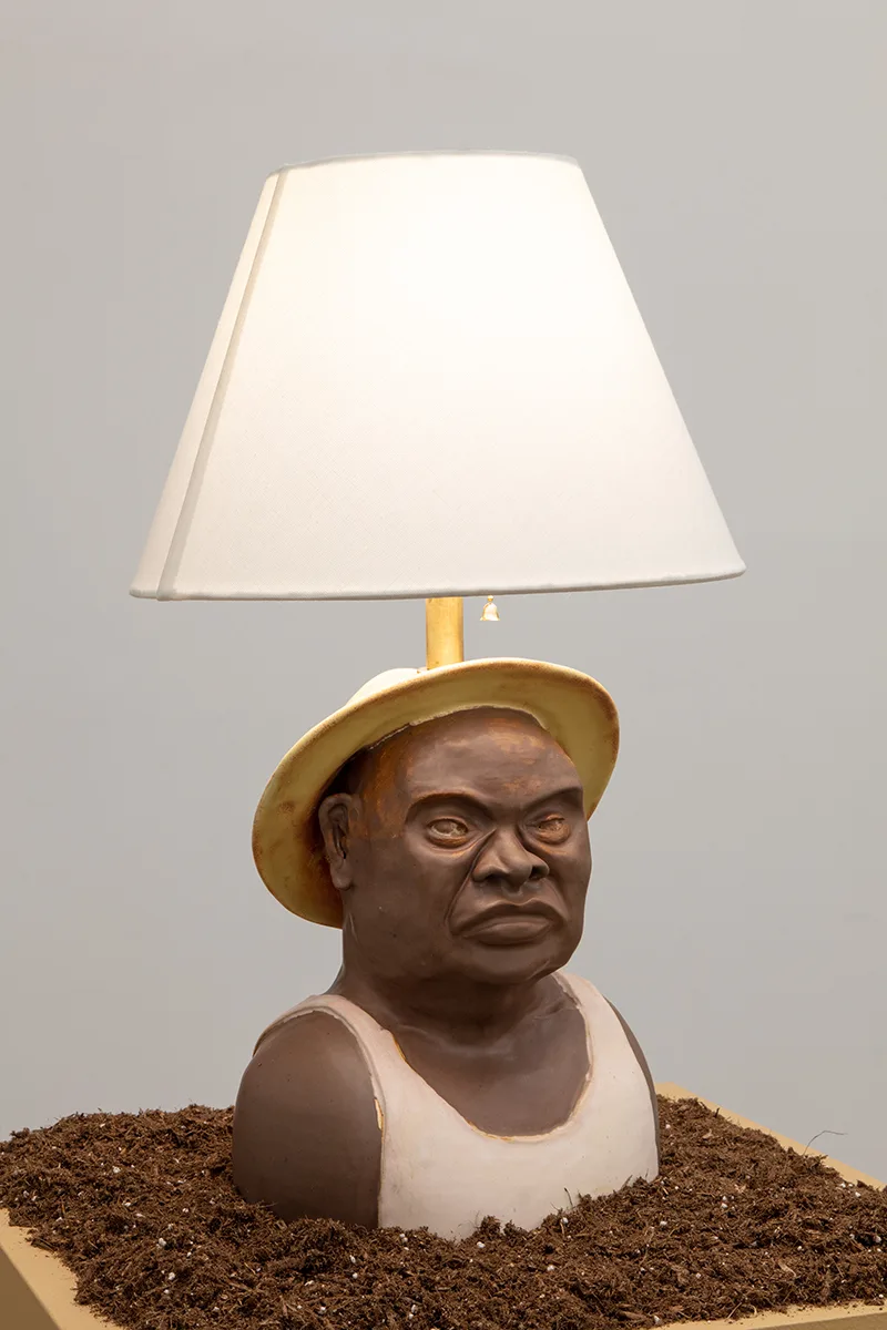 Borrowing from George Washington Carver’s pamphlet of the same name, How To Build Up Worn Out Soils speaks to a theme Ward has been mining in her work for years: self-determination and transformation despite limited resources. In the wake of those overlapping pandemics—Covid, climate anxiety, and the resurgence of old rage about persistent systemic racism, Ward reached for books to help gain perspective. Her study found her at the intersection of Black land justice and spirituality. Freedom Farmers by Monica M. White (2018), Leah Penniman’s Farming While Black (2018) and Tricia Hersey’s Rest Is Resistance: A Manifesto (2022) sowed the seeds and How To Build Up Worn Out Soils represents a harvest—the yield from a particular season of reading, meditating, praying, and then painting and sculpting.