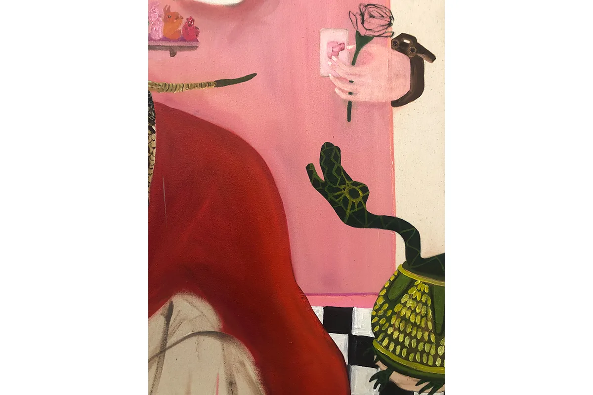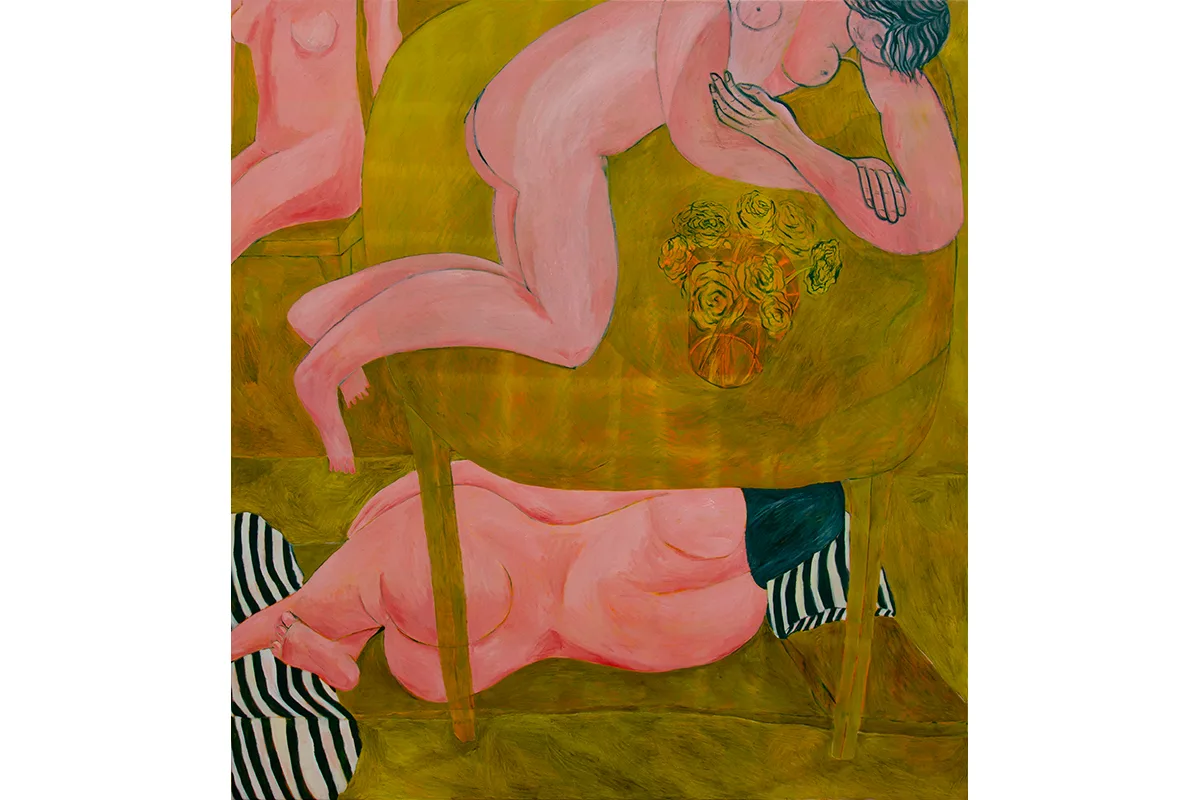 Heads or Tails annunciates the indefinite parameters of figuration; lured into the dreamlike, even mythological, expanse of bodies ungirded, the viewer can count on nothing other than the unpredictability of form in motion. Suspended, warped, teased and pulled around the edges of tables, expounding on alternative gravities, the works defy realism with finesse. With wickedly alluring profundity, each painting pointedly untethers the viewer from paradigmatic relationality: femininity without masculinity, expression without expectation, heads without bodies, succulence without beauty.