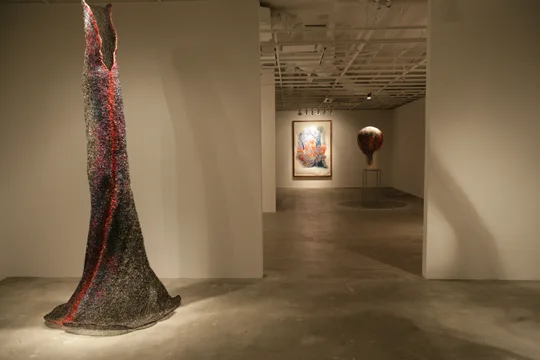 For Dante, Limbo was a place of light enclosed in darkness. The souls of limbo are enlightened by human reason and intellect, but they understand the insufficiency of the human mind to satisfy the needs of the soul. Schimert’s work uses this notion, that there is a gap between human want and human need, and in bands of vivid color, and strands of twisted wire, Schimert searches to connect the two.
