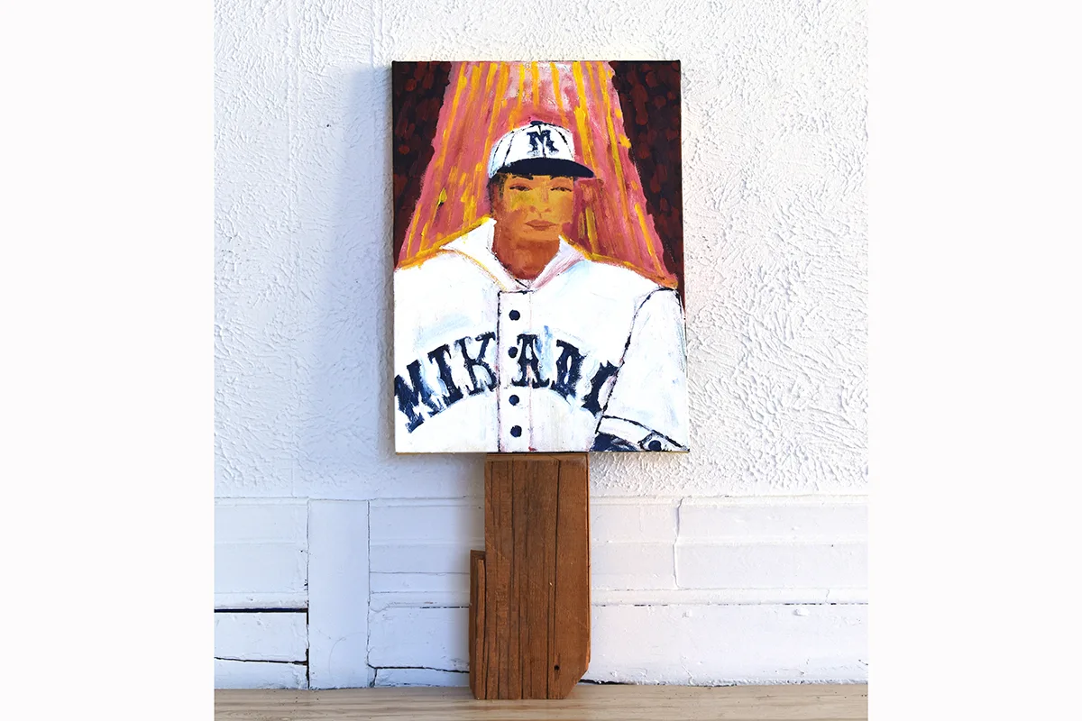 Exploring contemporary issues of xenophobia alongside personal Japanese Canadian experiences, Kellen Hatanaka amalgamates portraits of underrepresented athletes, suburban backyards and family memories, infusing his work with personal sentiment and a nostalgic view of his cultural upbringing. Paying homage to the historic Vancouver Asahi and Mikado baseball teams as well as overshadowed contemporary Asian athletes, Hatanaka comments on the longstanding effects of representation and its influences on marginalized communities.