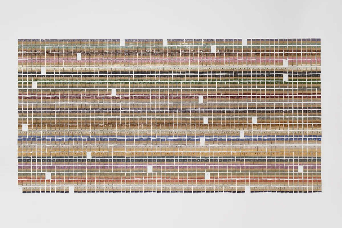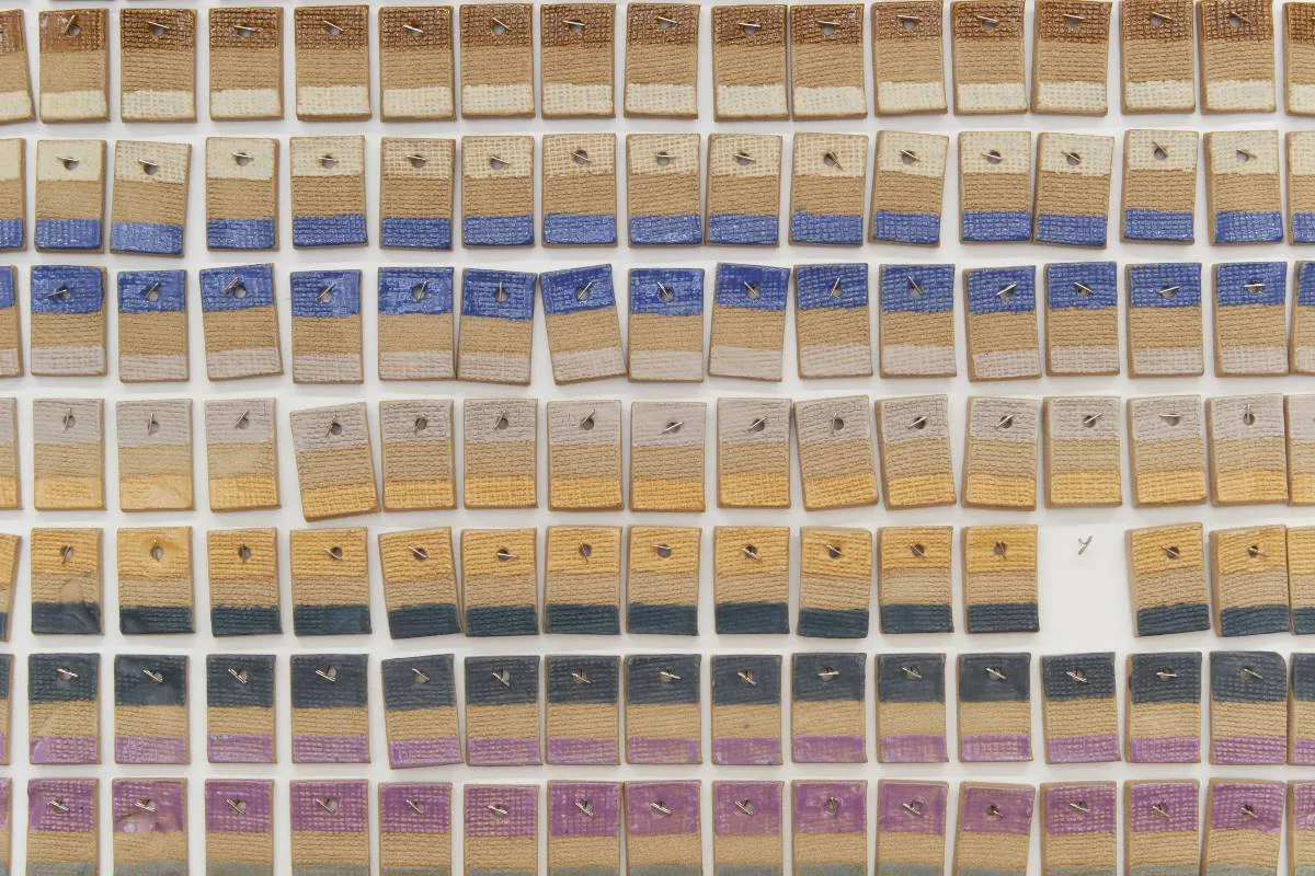 “A Shape Made Through Its Unraveling” is a large wall work composed of ceramic pendants, each of which is offered to visitors to the gallery to take, wear, and keep. By taking a pendant, each visitor participates in an ongoing performative act that manifests both connection to others and the necessary sharing of resources in order to promote mutual well being. Rethinking what ownership of an artwork can mean, the work exists not in the consolidation of the individual pieces, but in the spatial connections that are made by the dispersal of its parts.