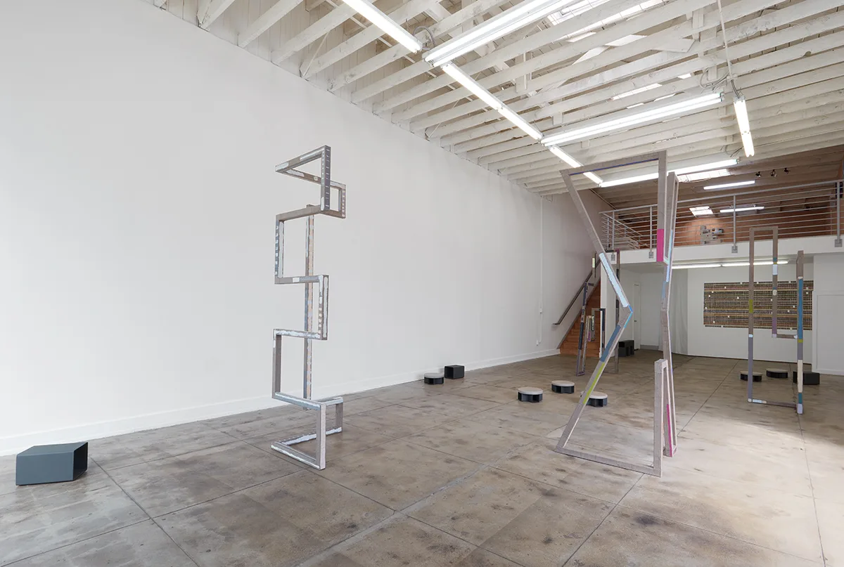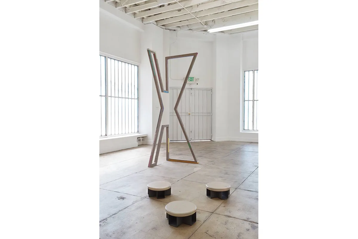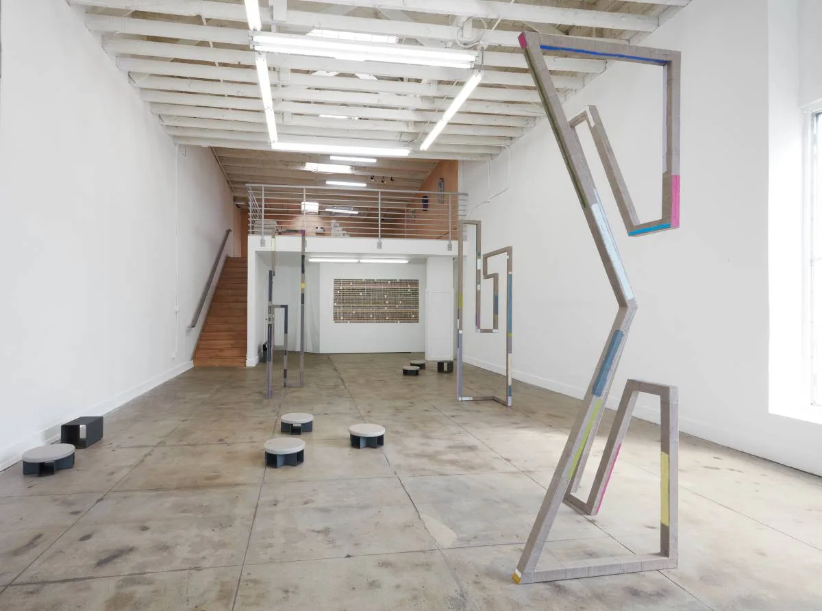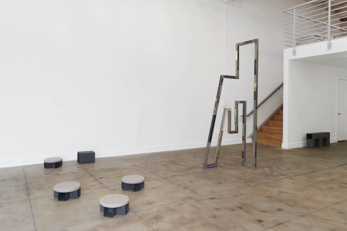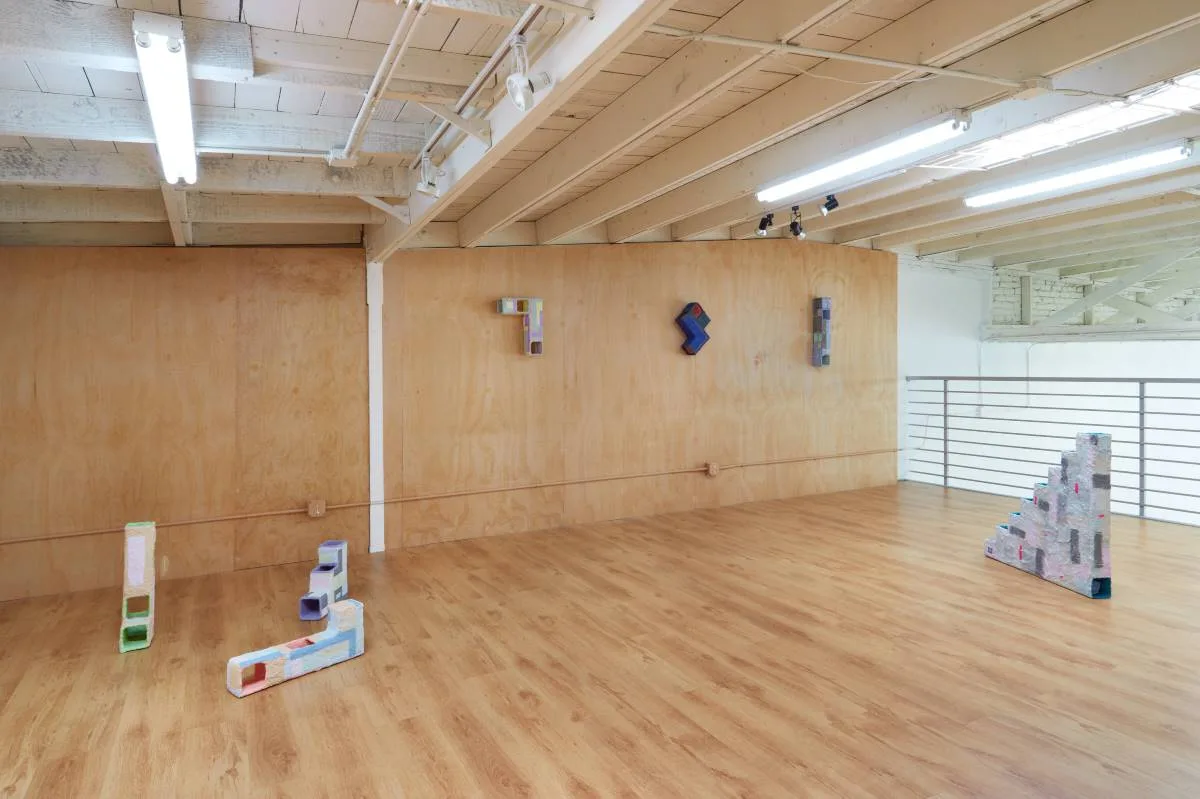 Over the last several years, Larkey’s work has existed within a framework of the utopian, combining aspects of language, sculpture, painting, and architecture to create structures that defy categorization. For this exhibition, Larkey has shifted from conceiving of the utopian as inherently unrealizable, to imagining, in conjunction with others, how we can create beneficial structures that are well within the field of the possible.