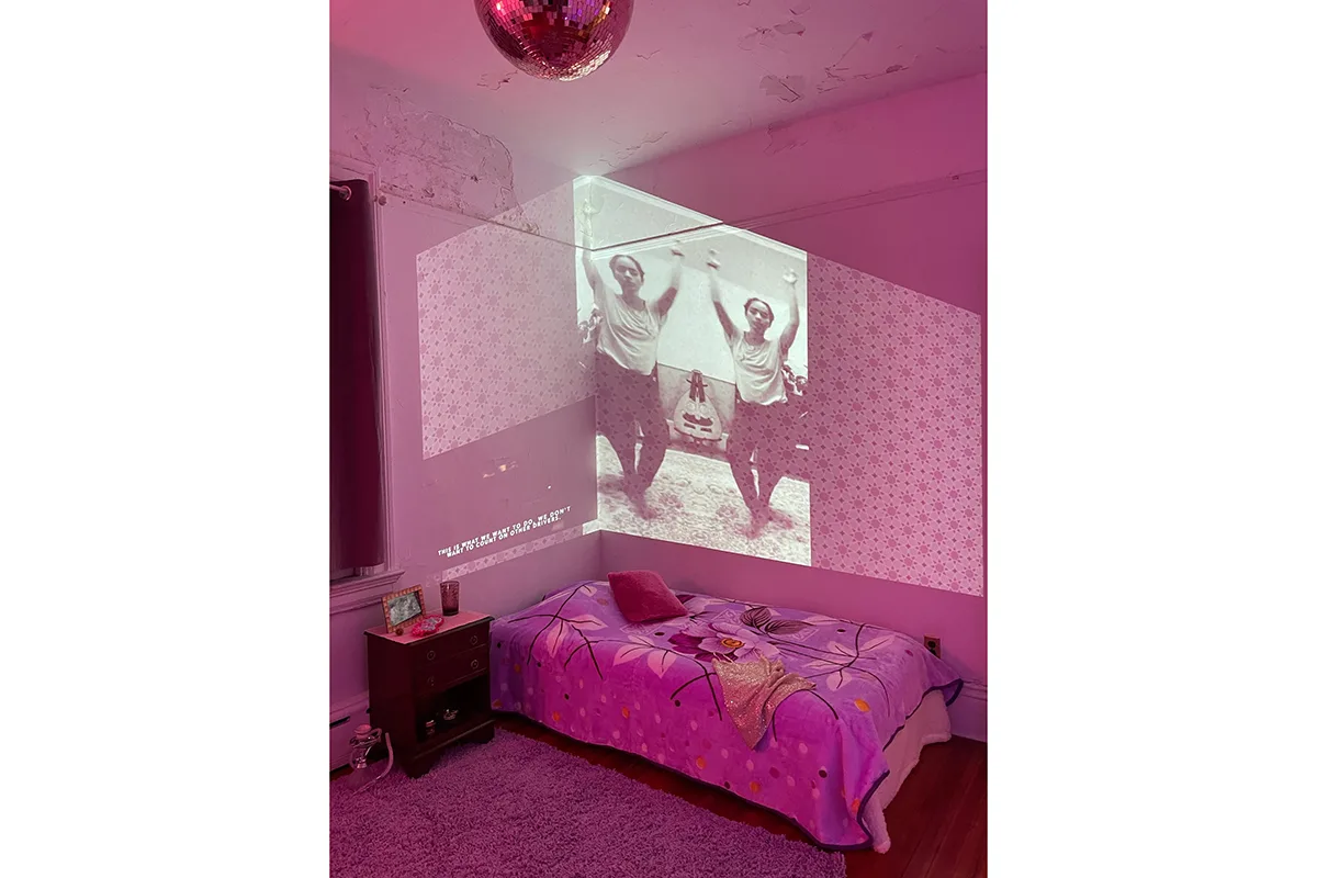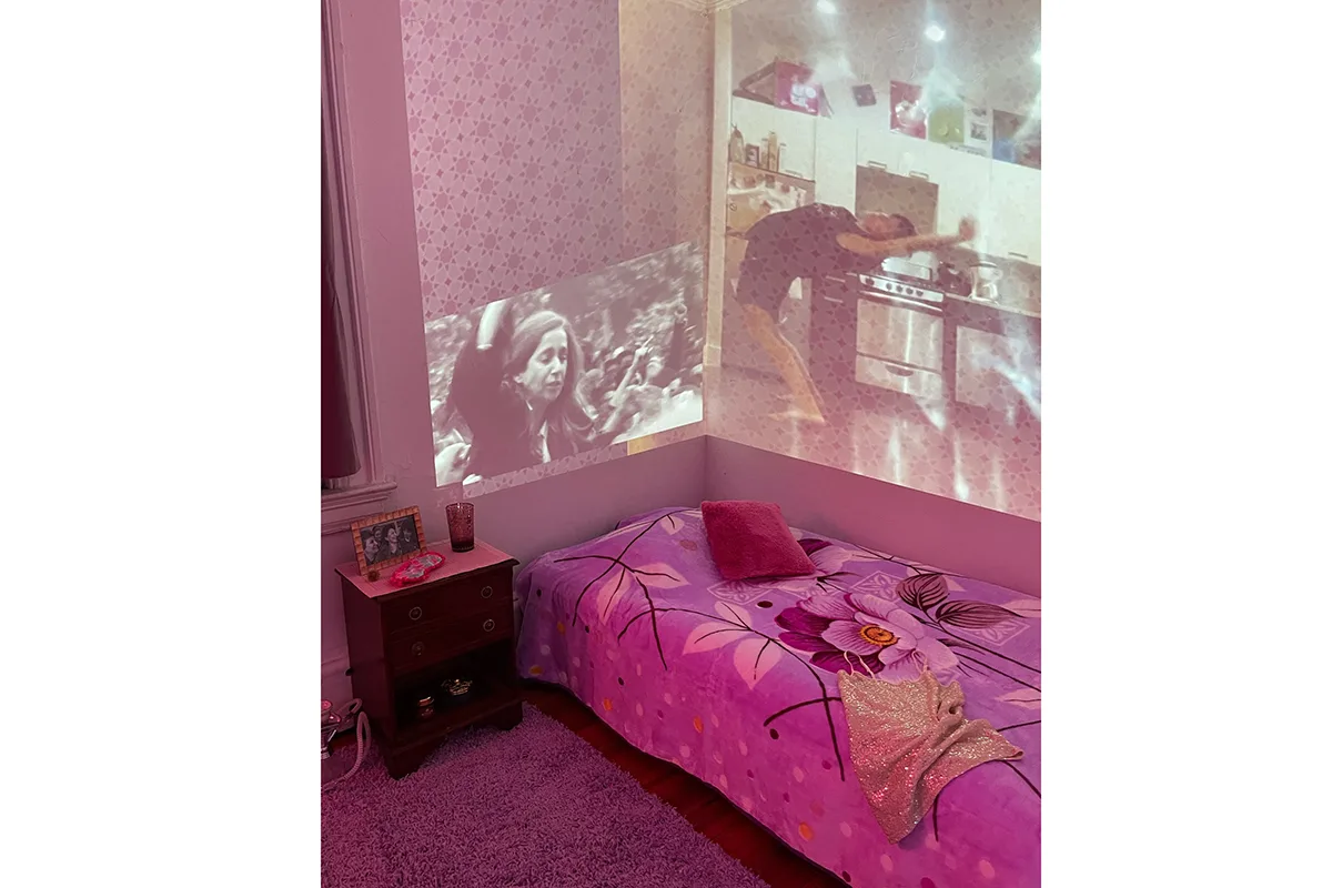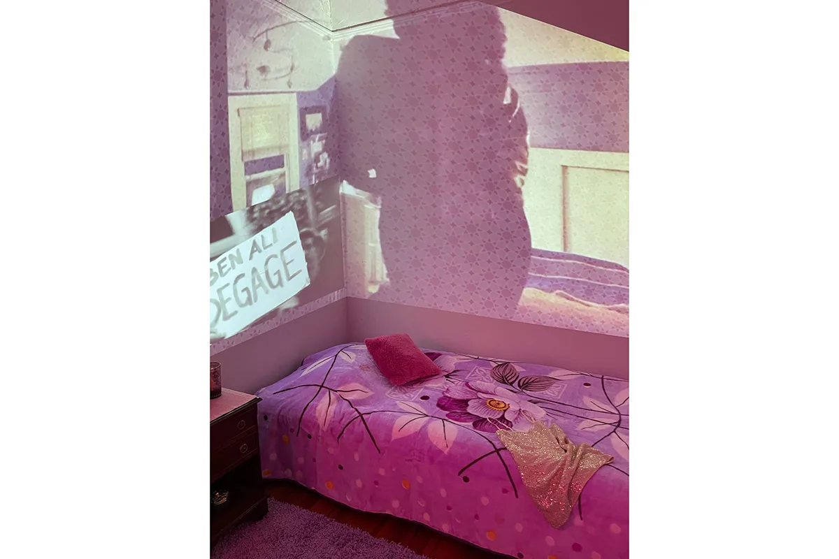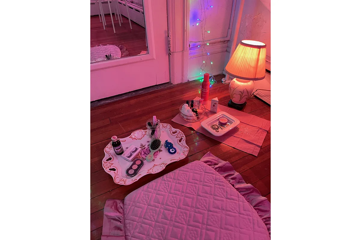 For Your Eyes Only an installation by Yasmine Nasser Diaz of a pink bedroom