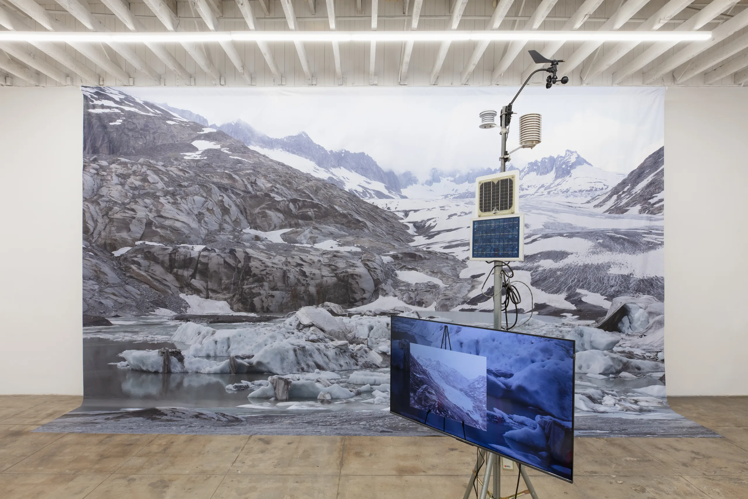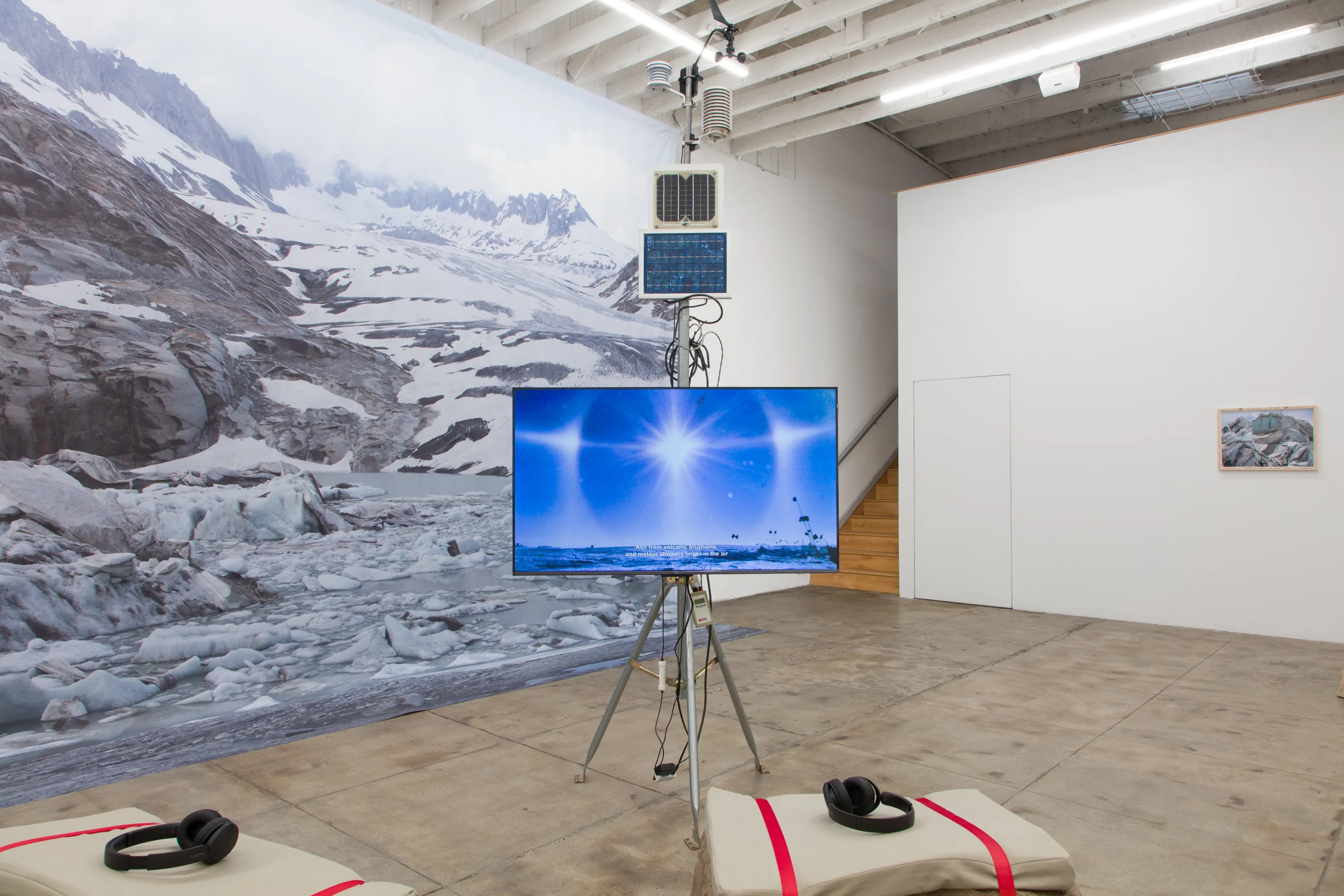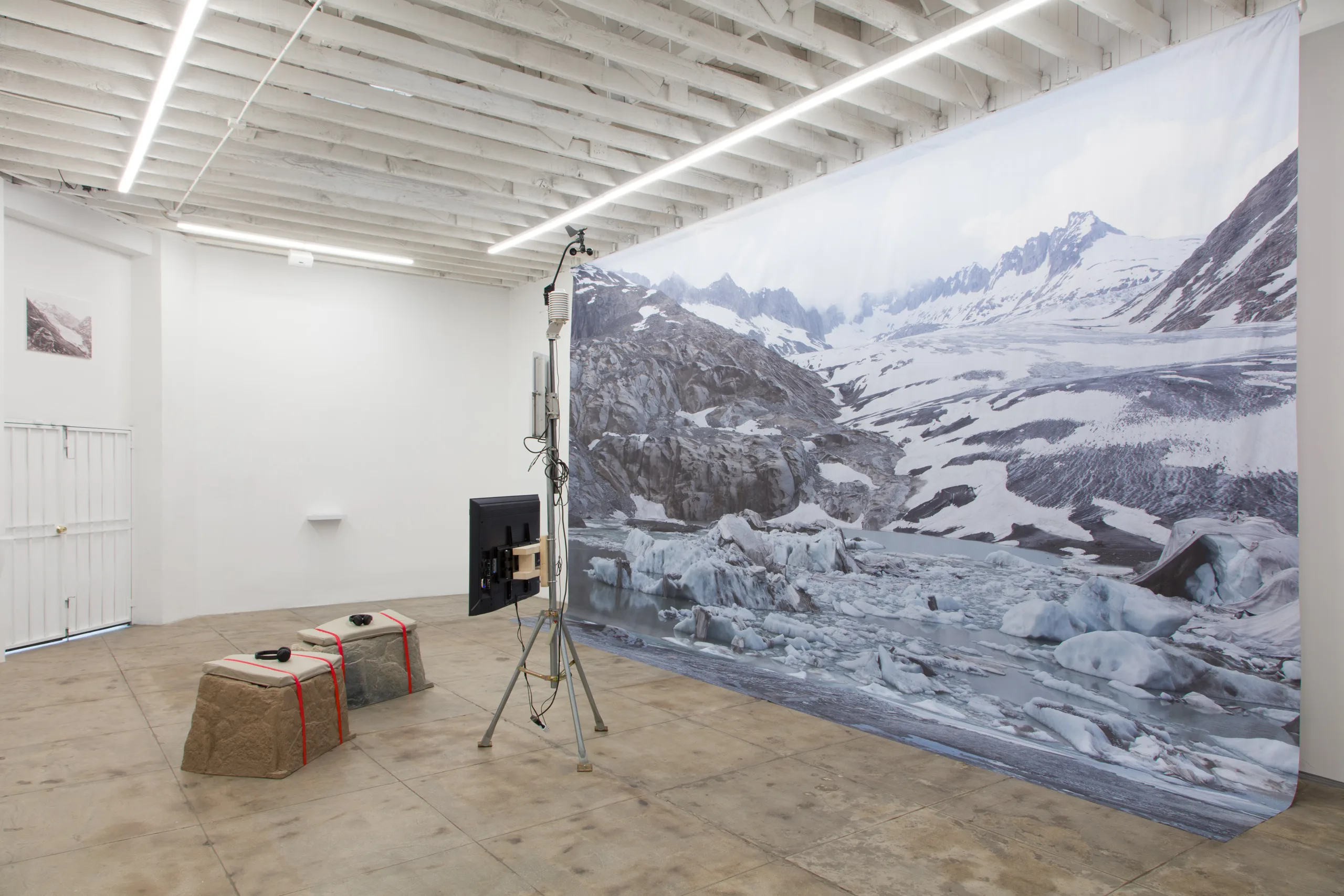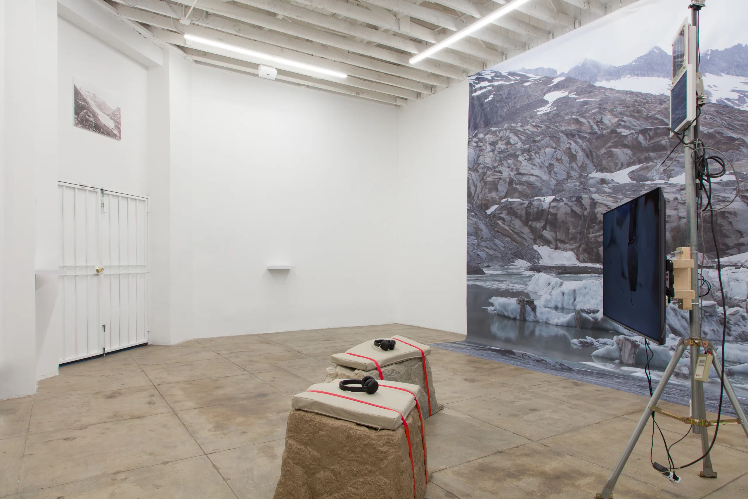 Promiscuous Ghost reflects on ice as memory and as a site to explore new forms of collective resistance. Ice manifests queer and trans materiality as both glacial and physical bodies bear witness to social and environmental transformation. Reflecting on these themes through the varied scales of monuments and souvenirs that emerge via photography, sculpture, and song, the exhibition considers the conditions and possibility of a future against the current odds. Corresponding language across the bodies of animals and those of glaciers—“glacier tongue,” “glacier snout,” “belly of a glacier,” and “calving”—fosters attendance to what the ice has to say and ultimately invites a closer listening to the landscapes that sustain us.