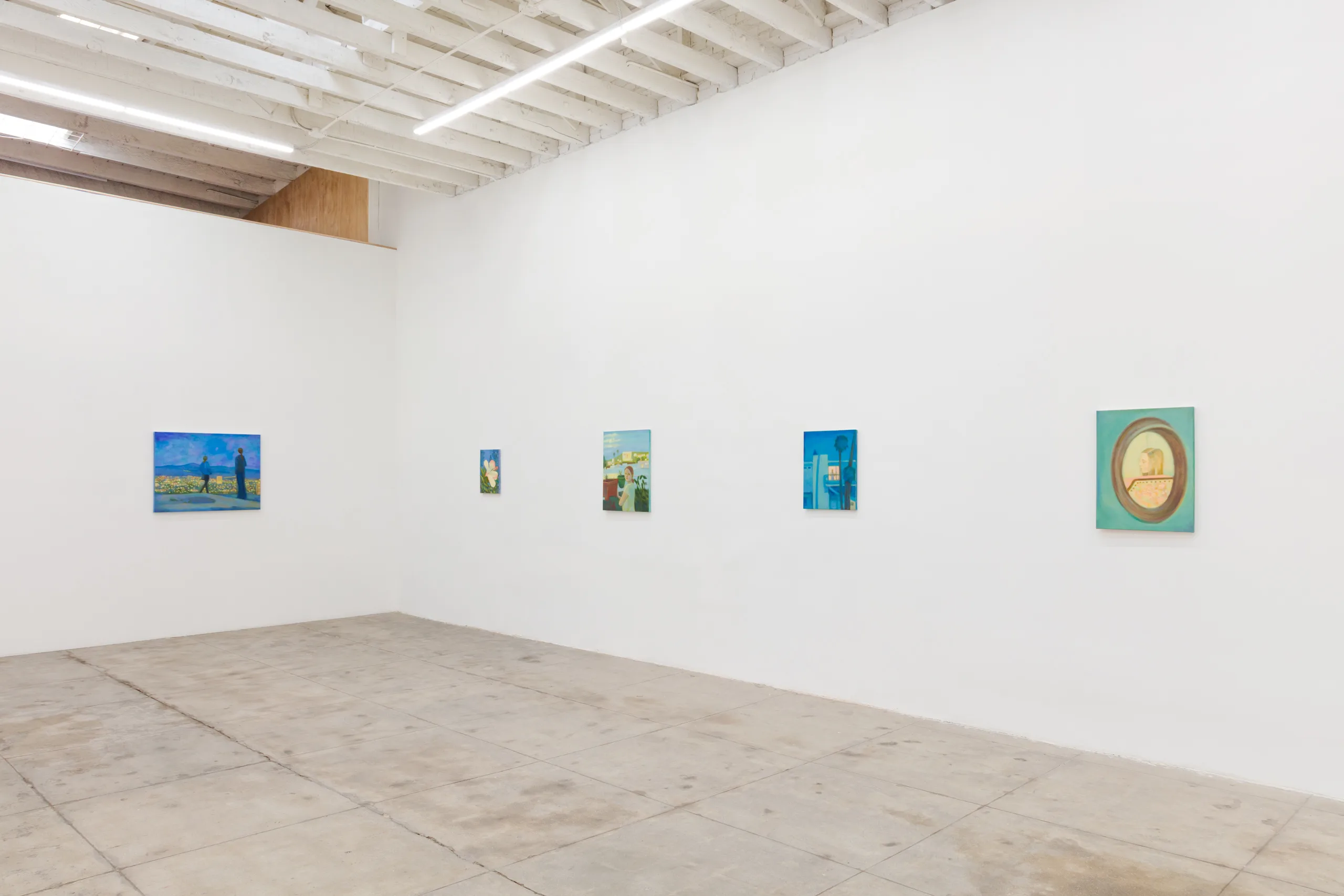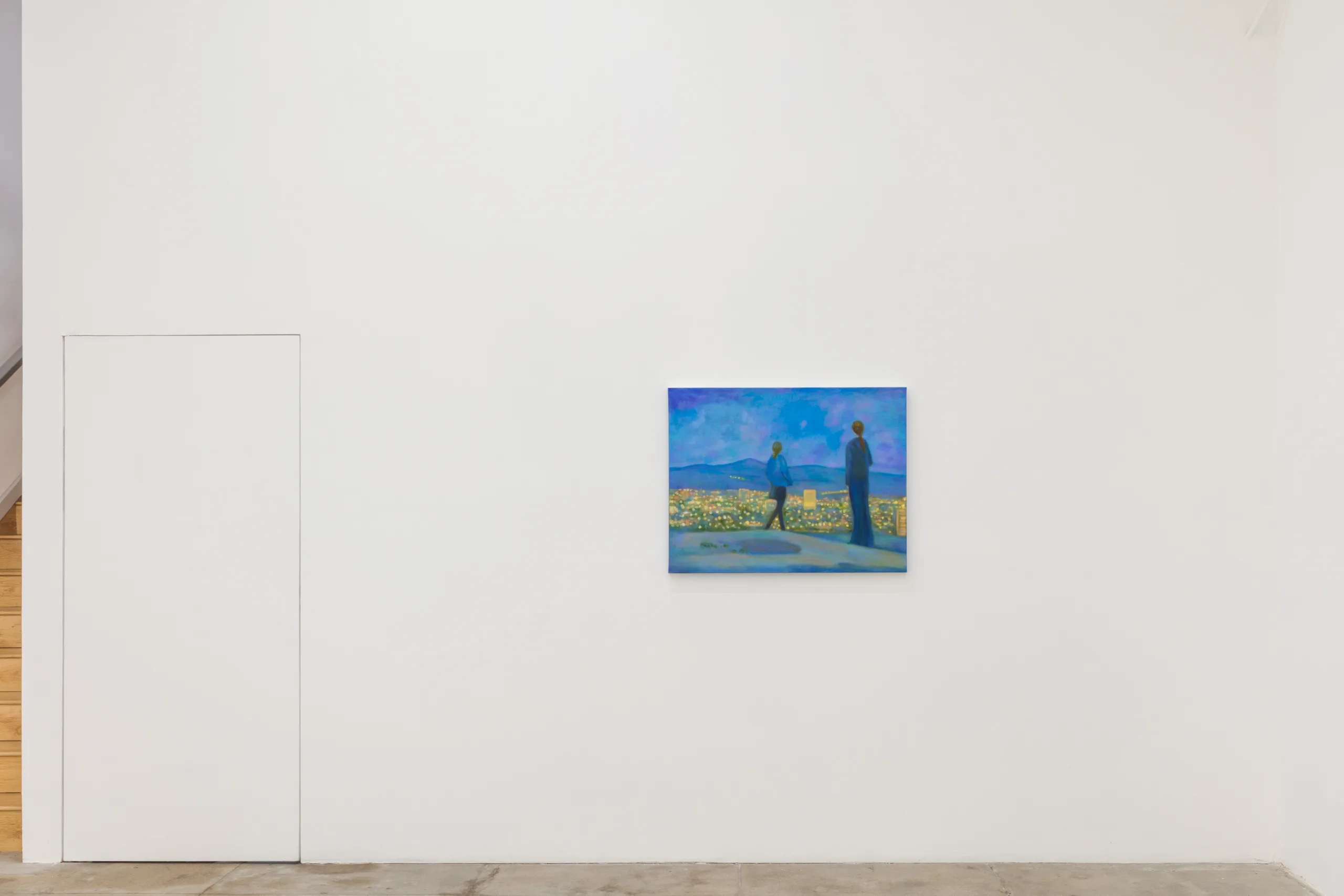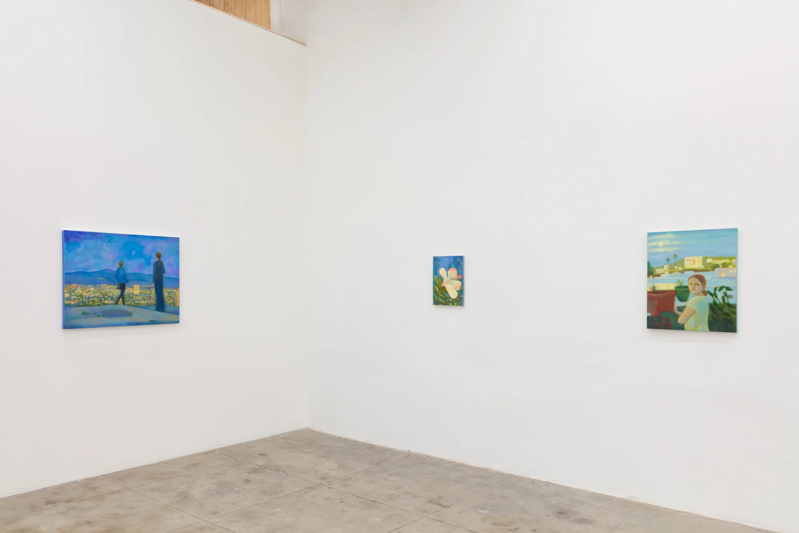 Eventide features paintings of quotidian moments softened by atmosphere. Gradually layering, wiping away, and reapplying oil paint, Paige Turner-Uribe generates an illusion of air, allowing light to move and create depth through the surface of her works. Shifting between scenes within her home, observed moments from her neighborhood, and panoramic views of Los Angeles, Turner-Uribe considers the diffusion and translucence of early evening and morning light as it interacts with color—overlapping and blending forms as they soften at the edges. Though ordinary, the moments captured within her home are as fleeting as the outdoor light—her daughter with her nose buried in a book, applying mascara, or showing off a freshly picked flower in a nearby park.