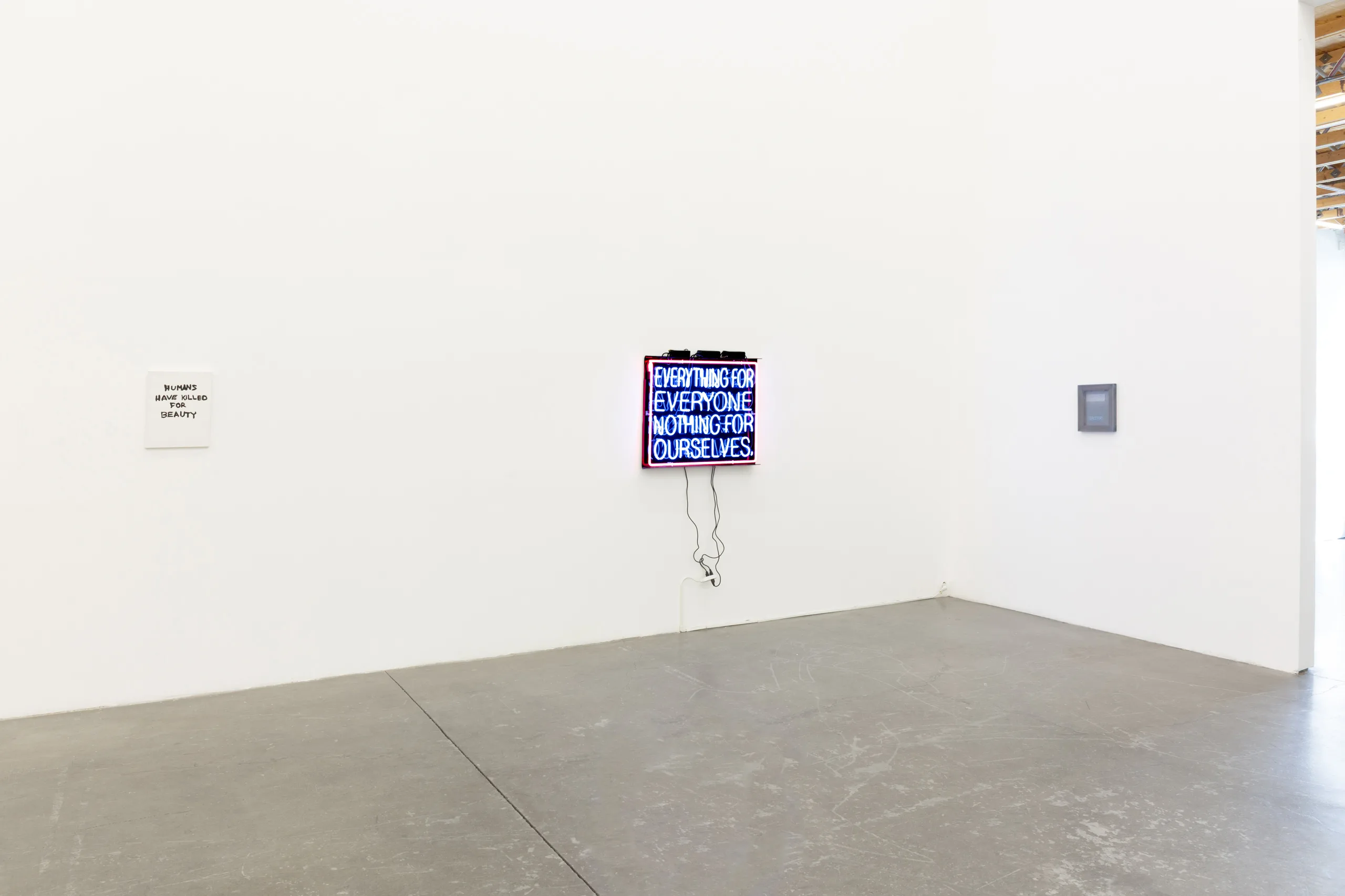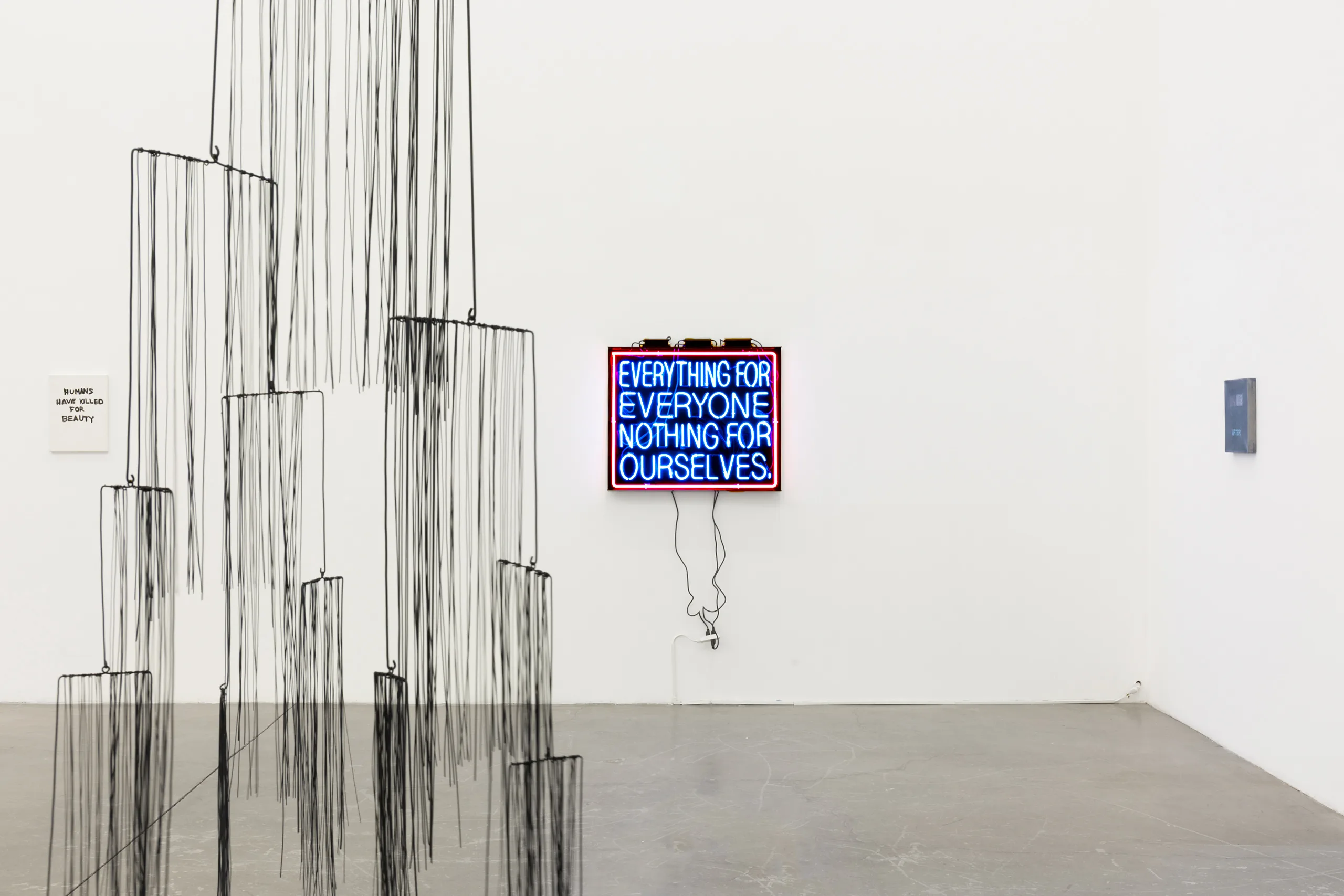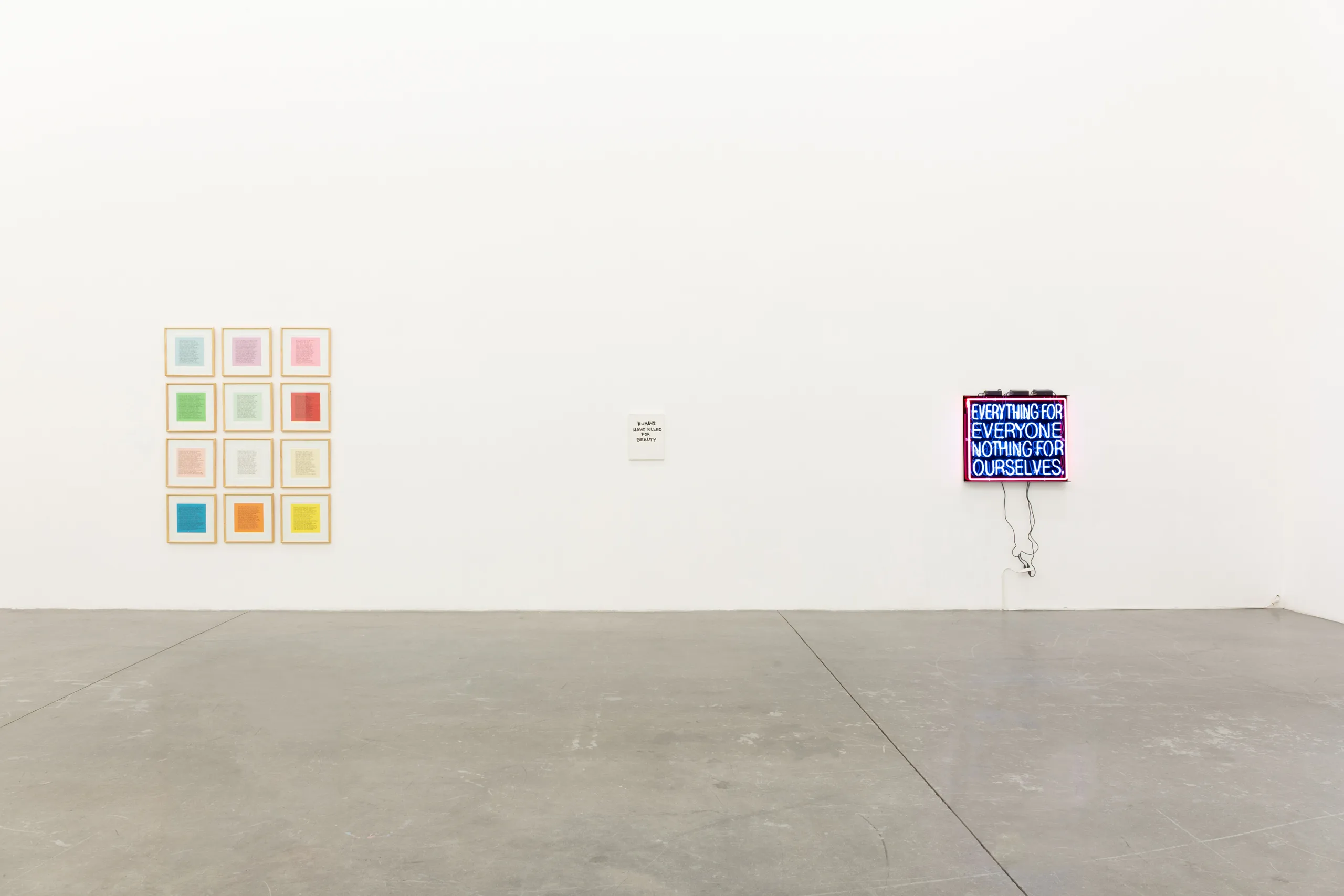 Across painting, textile, neon, and print, Parrhesia gathers ten artists spanning generations who transform language into image, allowing letters and phrases to take on material weight. Text is not simply read but painted, printed, illuminated, and stitched into form. The poetic edges of language brush against its political charge, tracing a lyrical lineage in which words become images. Each work contributes a distinct cadence to the conversation, transforming speech into vital acts of expression.