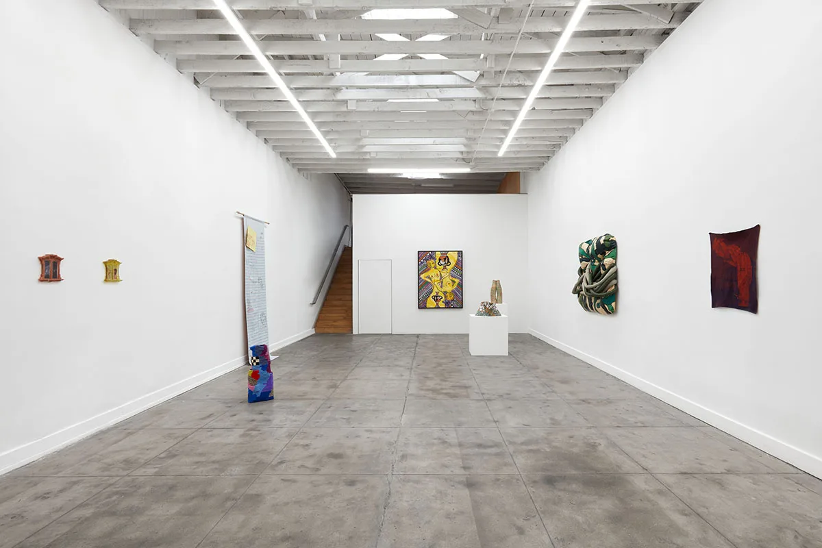 Ring Down the Curtain includes artists working to parse the complexities of gender, sexuality, identity, and power through a dedication to labor, design, and craft. A carefully considered intersection of ceramic, textile, paint, video, and installation engages sensory perception, creating somatic markers that challenge histories of cultural performativity, particularly as they apply to women. Each artist expresses their unique interests in the relationship between tactility and the significance of elicited bodily experience.