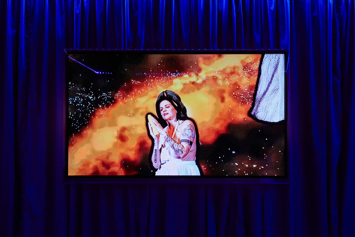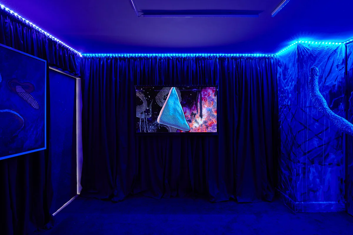 Trulee Hall (b. 1976) received her BFA from Atlanta College of Art in 1999 and her MFA from California Institute of the Arts in 2006. She currently lives and works in Los Angeles. Hall’s richly textured practice spans video, painting, sculpture, sound, dance, and immersive installation, routinely employing diverse technical skills gleaned from her experiences in various creative and entertainment industries. She began working in performance and video as an adolescent and developed a complex practice involving immersive sets, elaborate costumes, puppetry, claymation, and CGI. Her paintings, sculptures, and installations integrate with and inform facets of her videos and soundtracks in an overarching practice. Hall’s choreographed videos of non-narrative, surreal, philosophical, and symbolic systems employ a fiercely playful sense of humor, a patient appreciation for the mundane, and a love of the absurd.