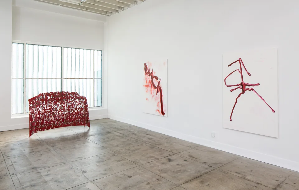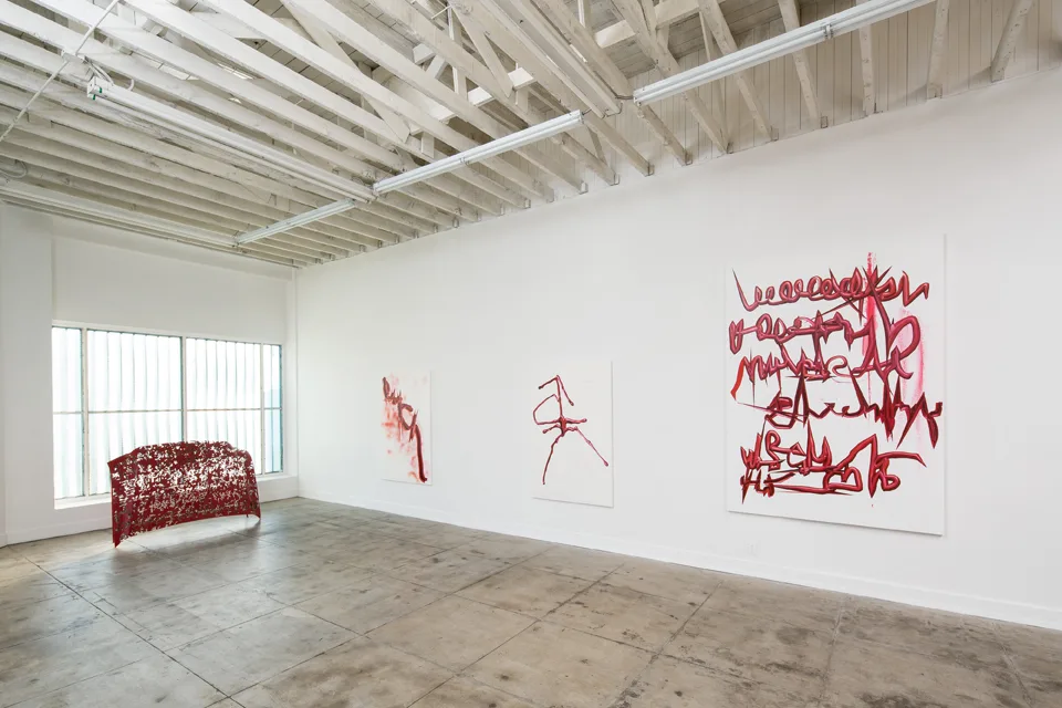 Rives Granade Zamora, 2013 – 2015 oil and paper on canvas 72 x 72 inchesRives Granade happy, 2015 Oil on canvas 72 x 72 inchesRives Granade Eating Ortolan, 2015 Oil on canvas 65.25 x 43.5 inchesRives Granade Untitled , 2015 oil on canvas 65.25 x 43.5 inchesRives Granade Untitled, 2015 oil, spray paint, and gesso on canvas 65.25 x 43.5 inchesRives Granade Wine Dark Sea, 2015 Oil on canvas 65.25 x 43.5 inchesRives Granade Red Poem, 2015 oil on gessoed canvas 96 x 66 inchesRives Granade Untitled, 2015 oil, enamel, acrylic shellac and sticker on paper 15 x 26 inchesRives Granade Untitled, 2015 oil, enamel and shellac on paper 36 x 18 inchesRives Granade The Saddle, 2015 steel 47 x 68 x 12 inchesRives Granade Untitled Logo, 2015 oil and enamel on aluminum 20 x 23 inchesRives Granade Tepid Ocean Wave, 2015 laser etched steel 10 x 13.5 x 1 inches