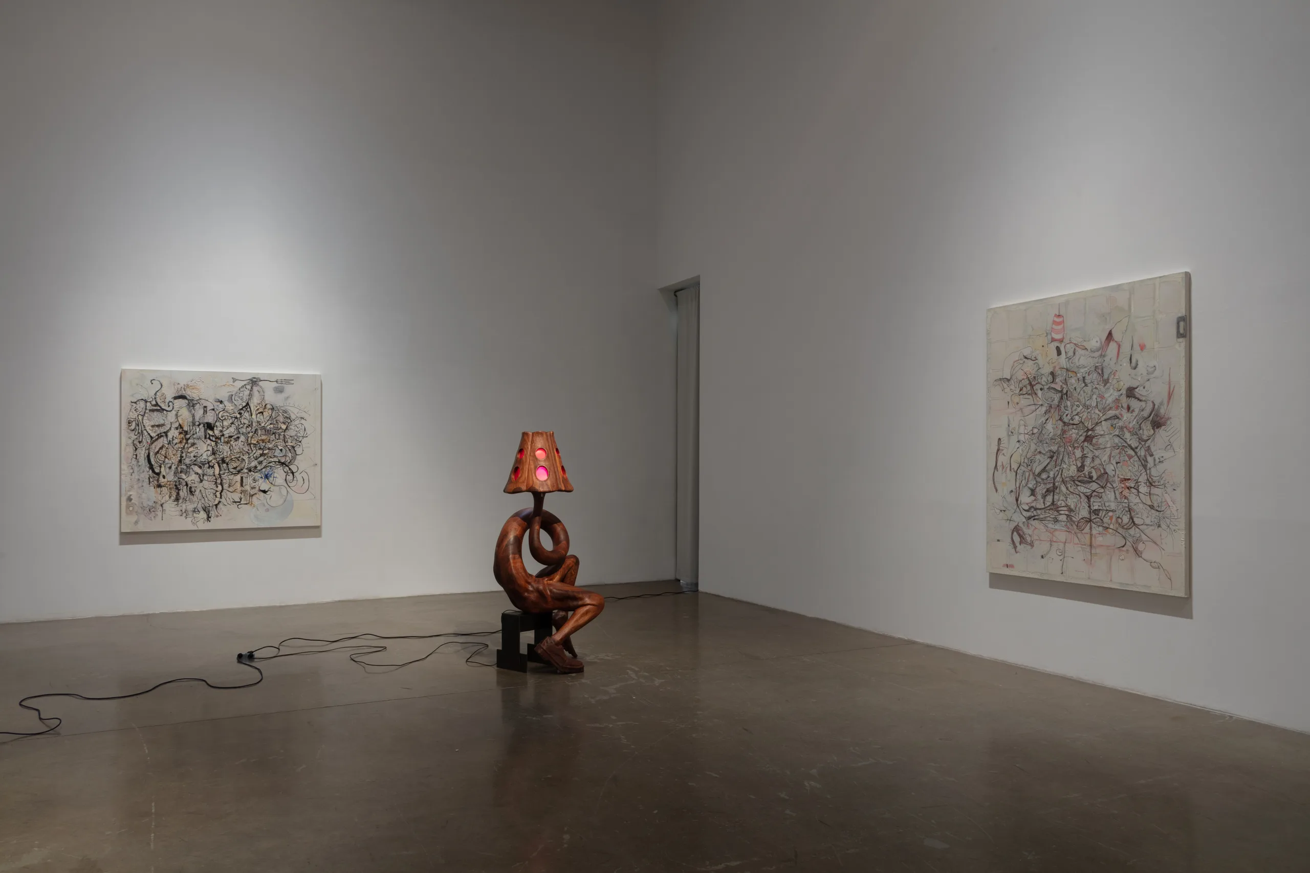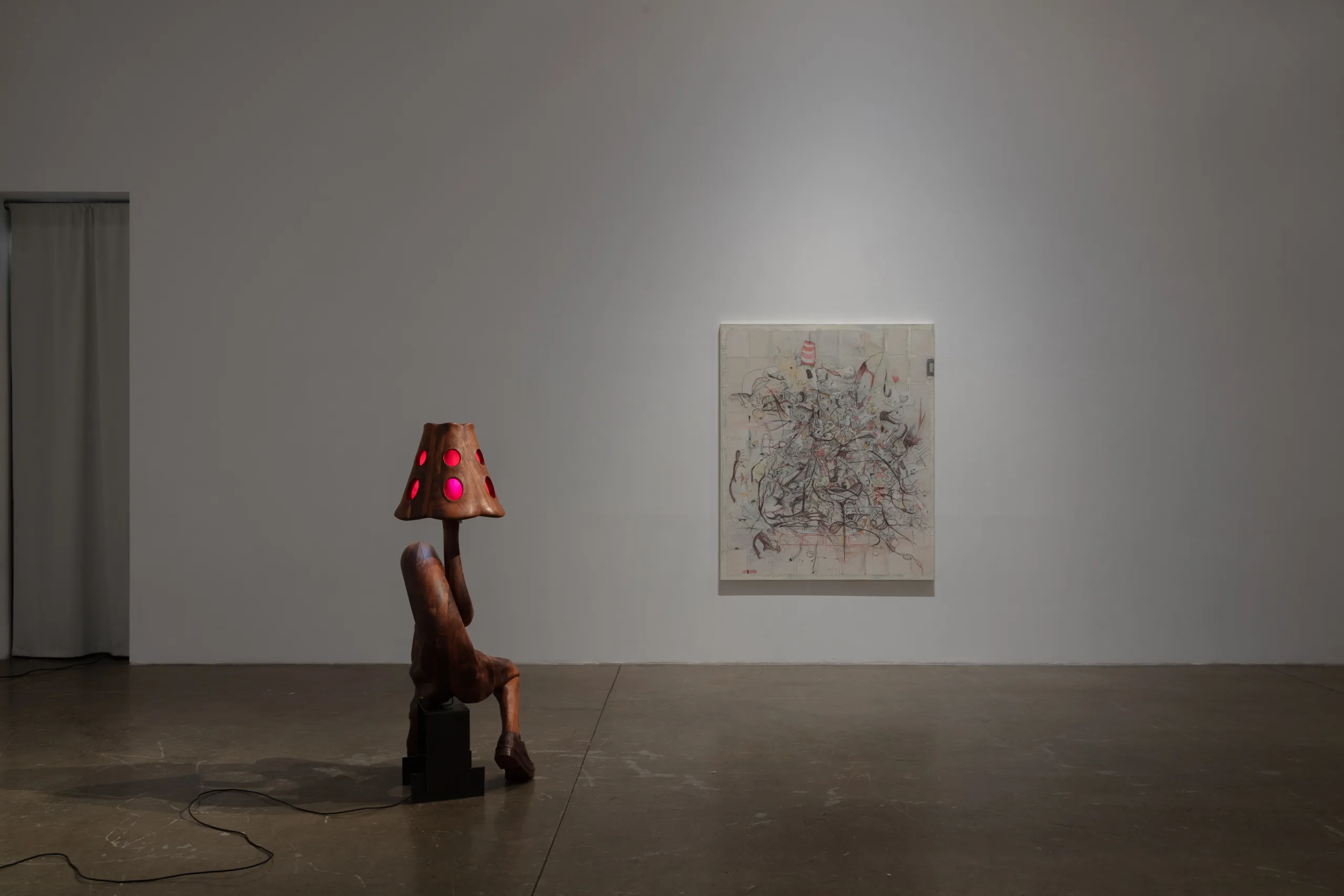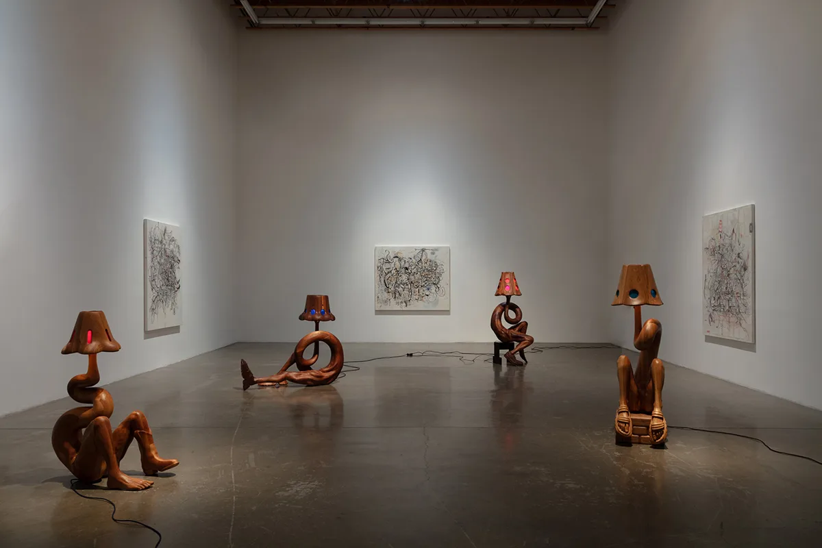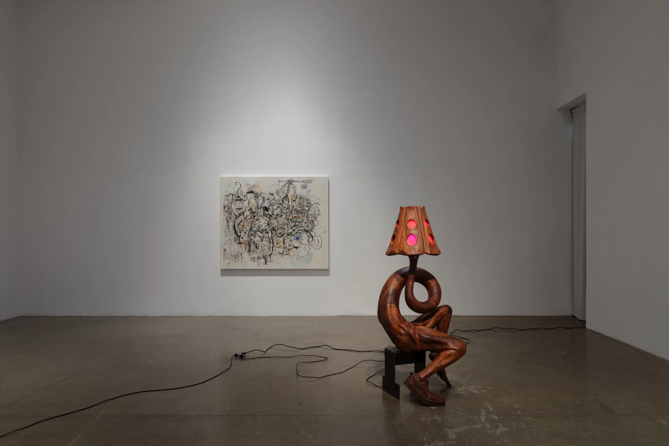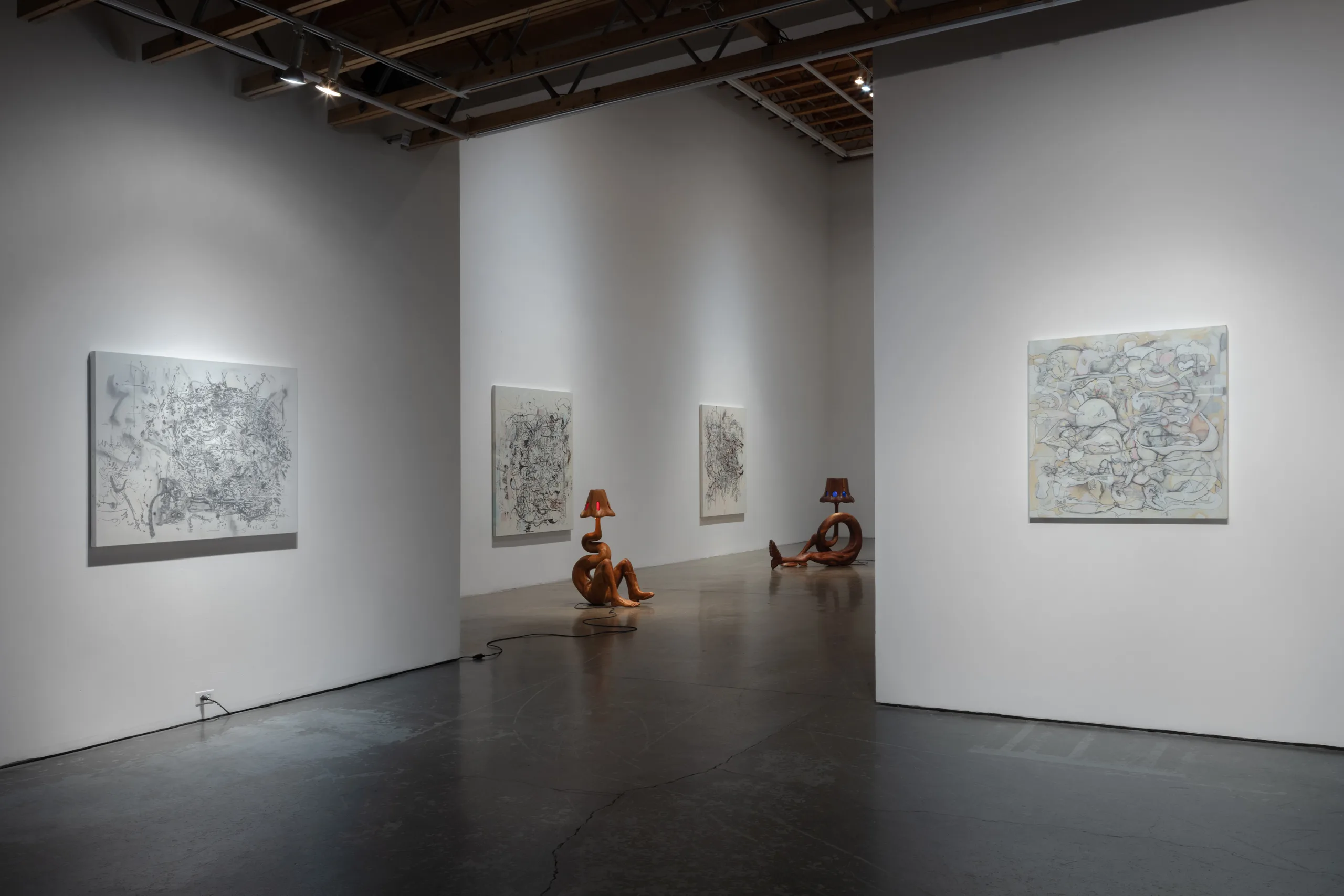 Silent Spines pairs Rives Granade’s abstract paintings and Vincent Pocsik’s anthropomorphic lamp sculptures to complement one another as they push conventional boundaries in their respective mediums – Granade in an exploration of consciousness and Pocsik via his innovative approach to form. Both artists take an imaginative approach to their work to present a corporeal language of unusual curves, shapes, and textures.