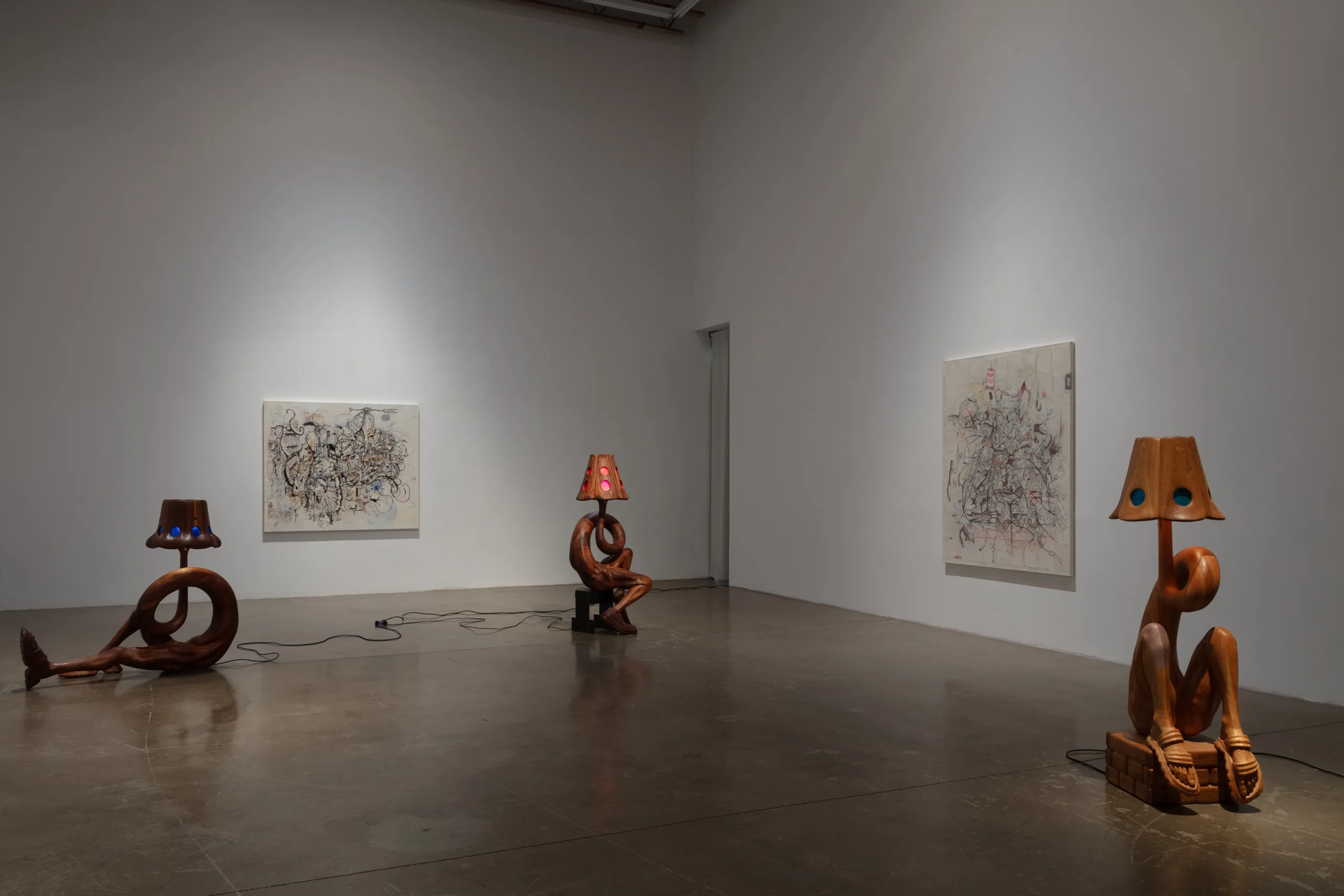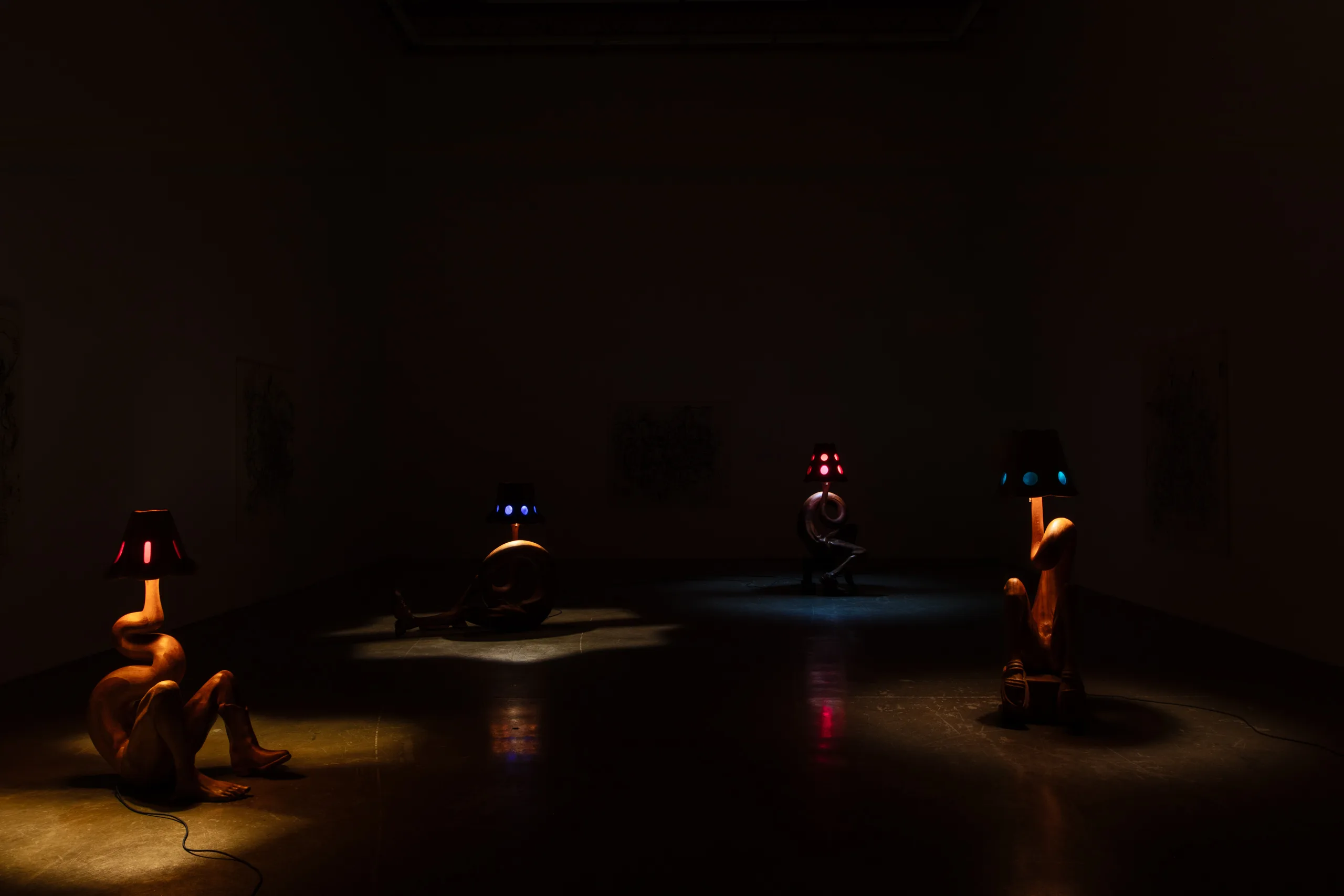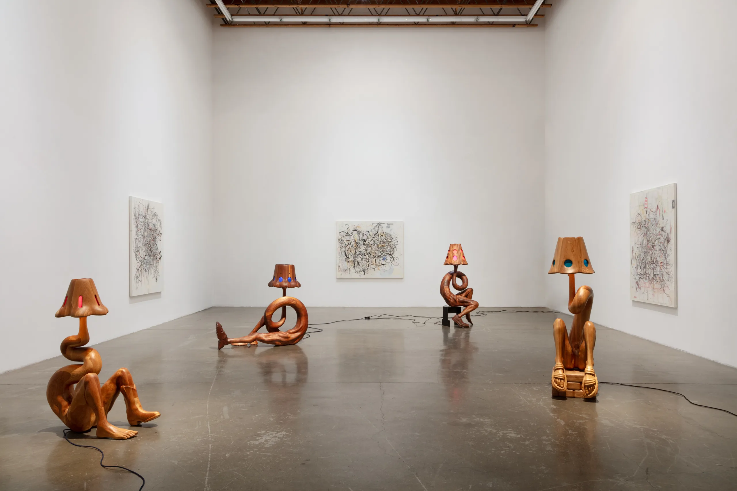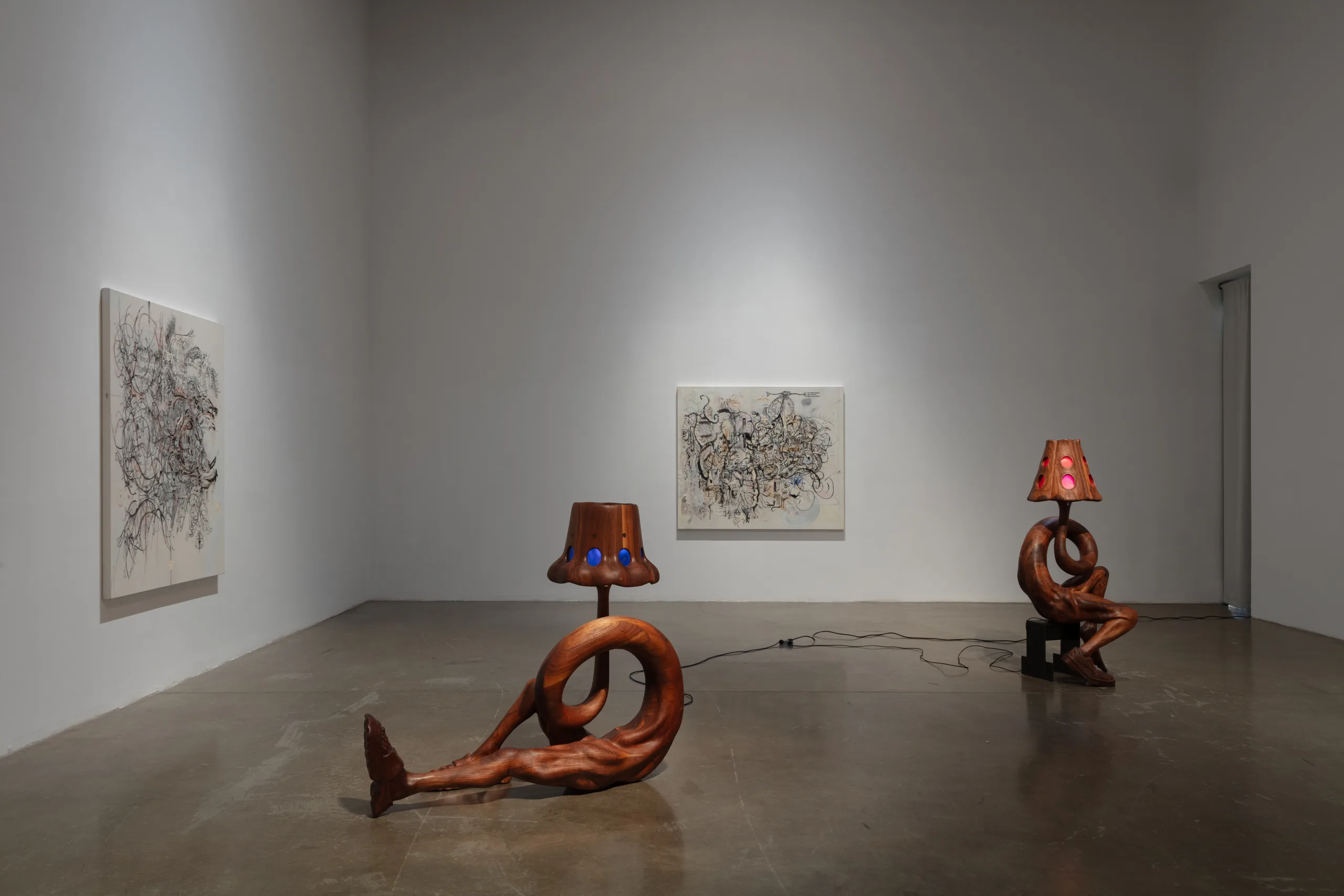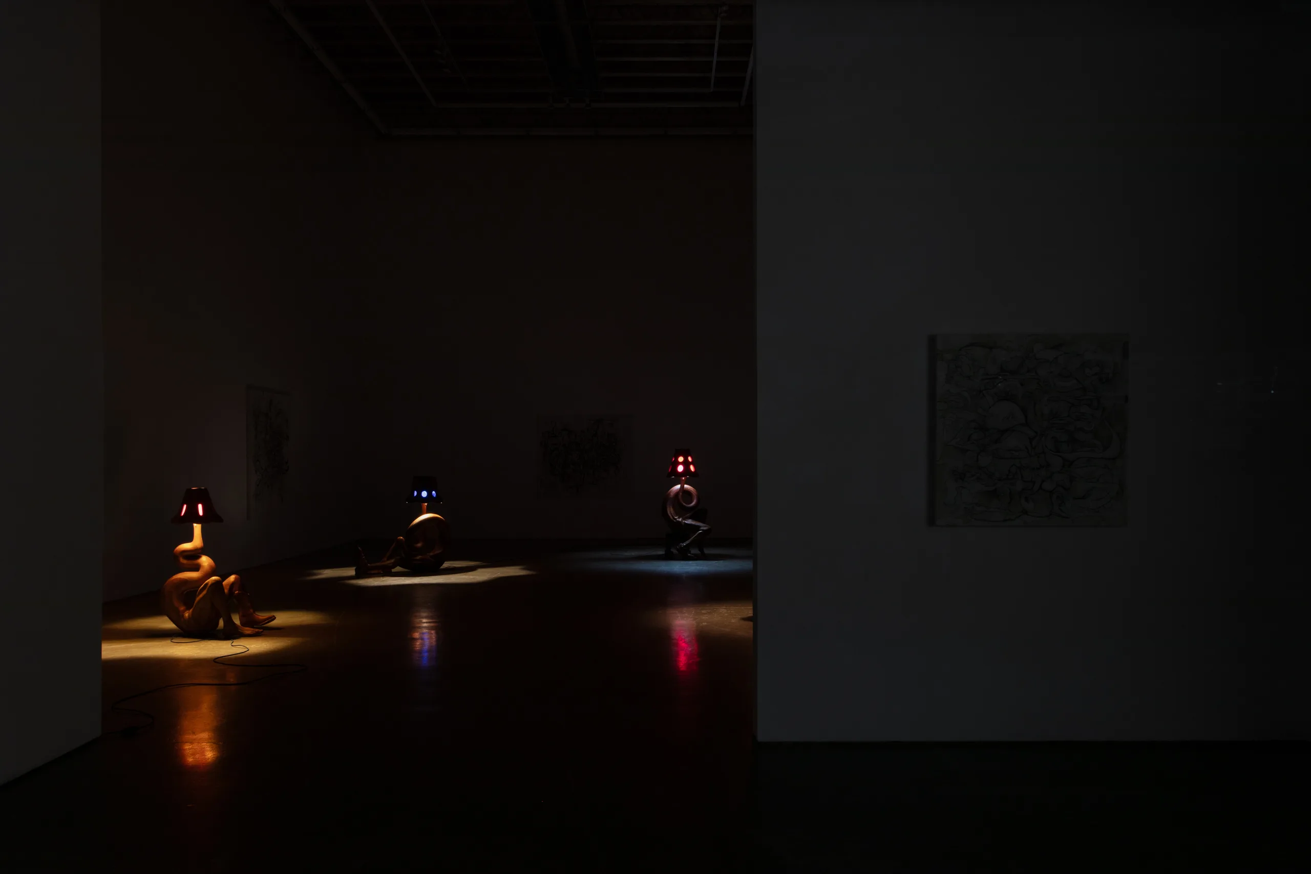 Silent Spines pairs Rives Granade’s abstract paintings and Vincent Pocsik’s anthropomorphic lamp sculptures to complement one another as they push conventional boundaries in their respective mediums – Granade in an exploration of consciousness and Pocsik via his innovative approach to form. Both artists take an imaginative approach to their work to present a corporeal language of unusual curves, shapes, and textures.