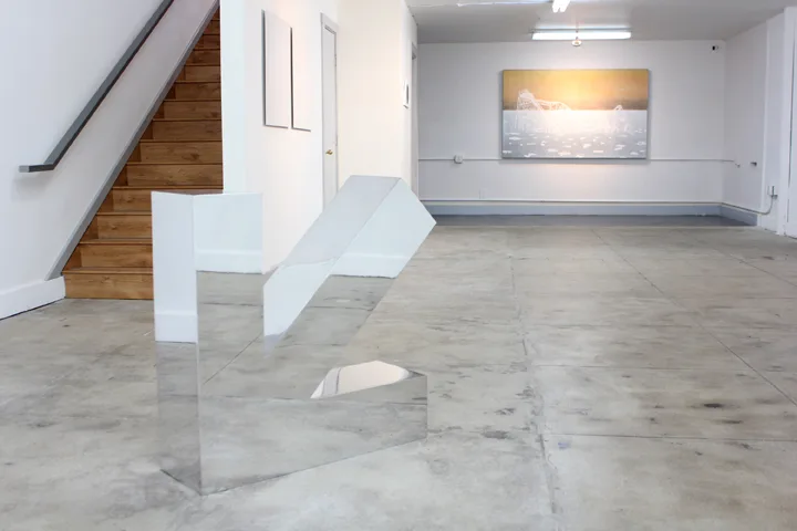 Some artists, such as Tomory Dodge and Jacob Melchi use the horizon line as a formal device to create abstract images. Wills’ use of a vertical horizon acts as a perceptual zip line, transporting the eye through an imagined depth within the work. Other artists, however, revealed that the horizon line is not only a tool, but is essential to the reading of a work. Suzanne Adelman and Patrick Lakey consider it as a backdrop for supporting narrative. Others, like Keith Walsh and Zoe Crosher examine it as a marker of time and use it to convey chronology and history. Fran Siegel’s Quatorze recognizes it as a mechanism to connect two points. And others like Molly Larkey’s and Cosimo Cavallaro’s three dimensional works signal the horizon using material, volume and negative space. Collectively these works build meaning, as multiple interpretations reveal a pervasive truth.