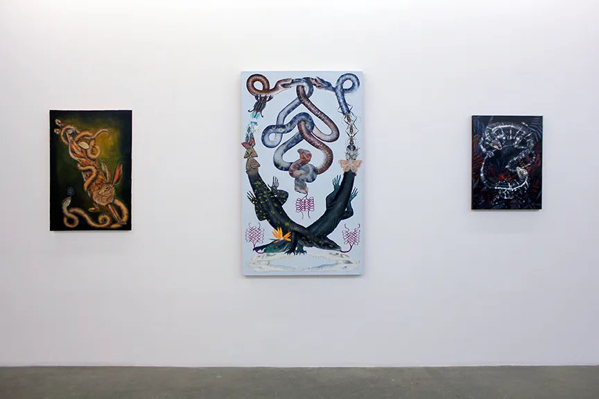 De Iuliis’ paintings possess a charmingly self-aware curiosity with the natural world. Pulling inspiration from the environment, mainly from animals, flora and fauna, de Iuliis focuses on the visual intricacy, pattern, color and form donned by reptiles, amphibians and mammals. Almost like a scientist, she carefully examines and researches a subject. She then documents it in paint, infusing a rich level of imagination into the final results.