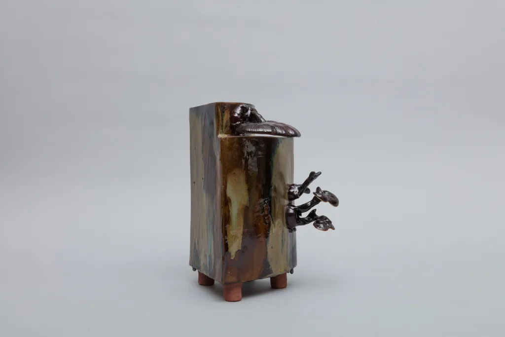 Ganoderma sinense (reishi mushroom), ceramic, shellac, supplemented sawdust